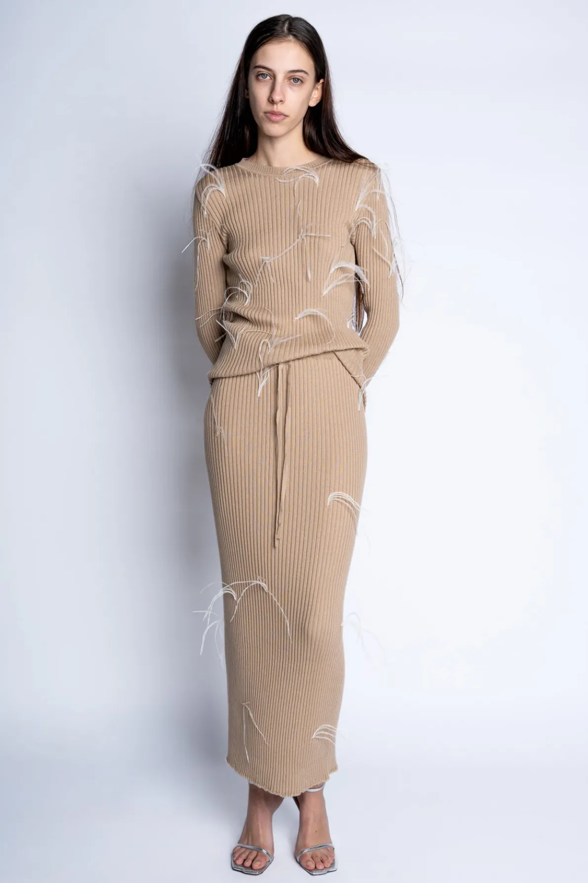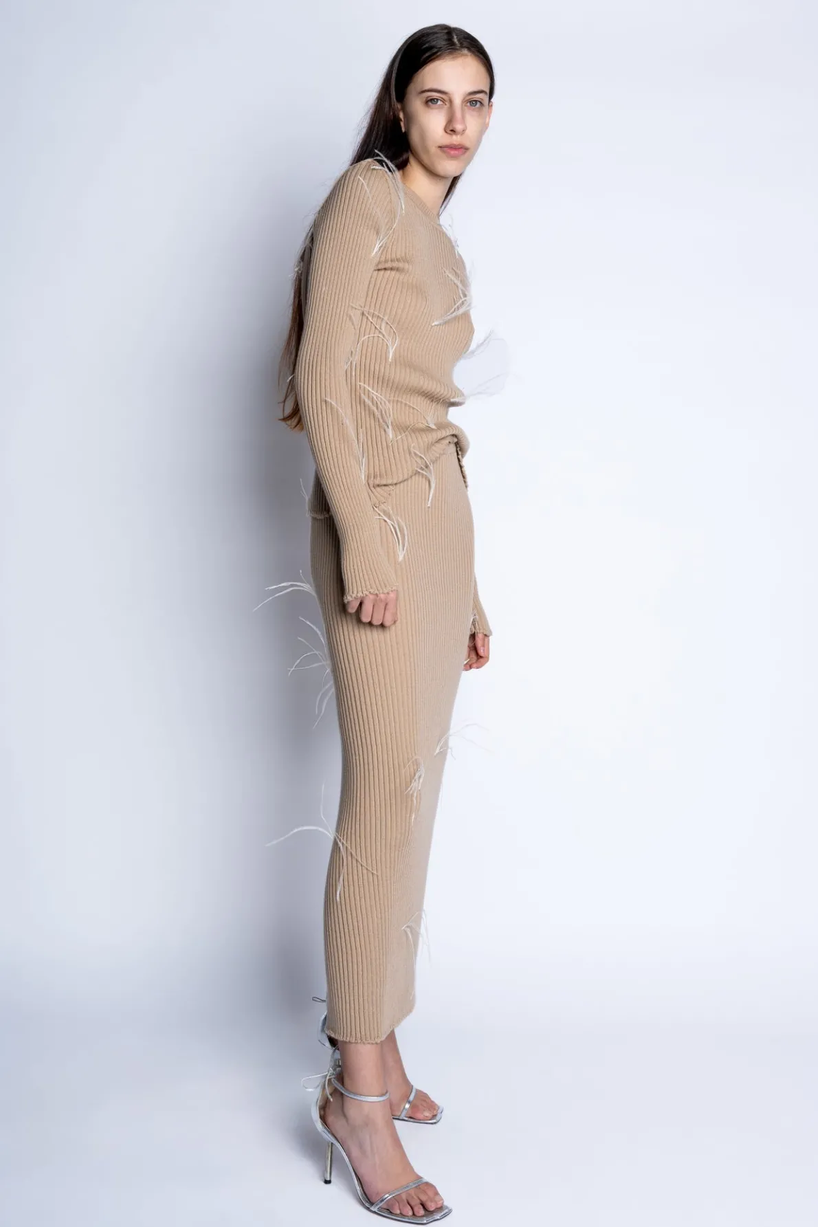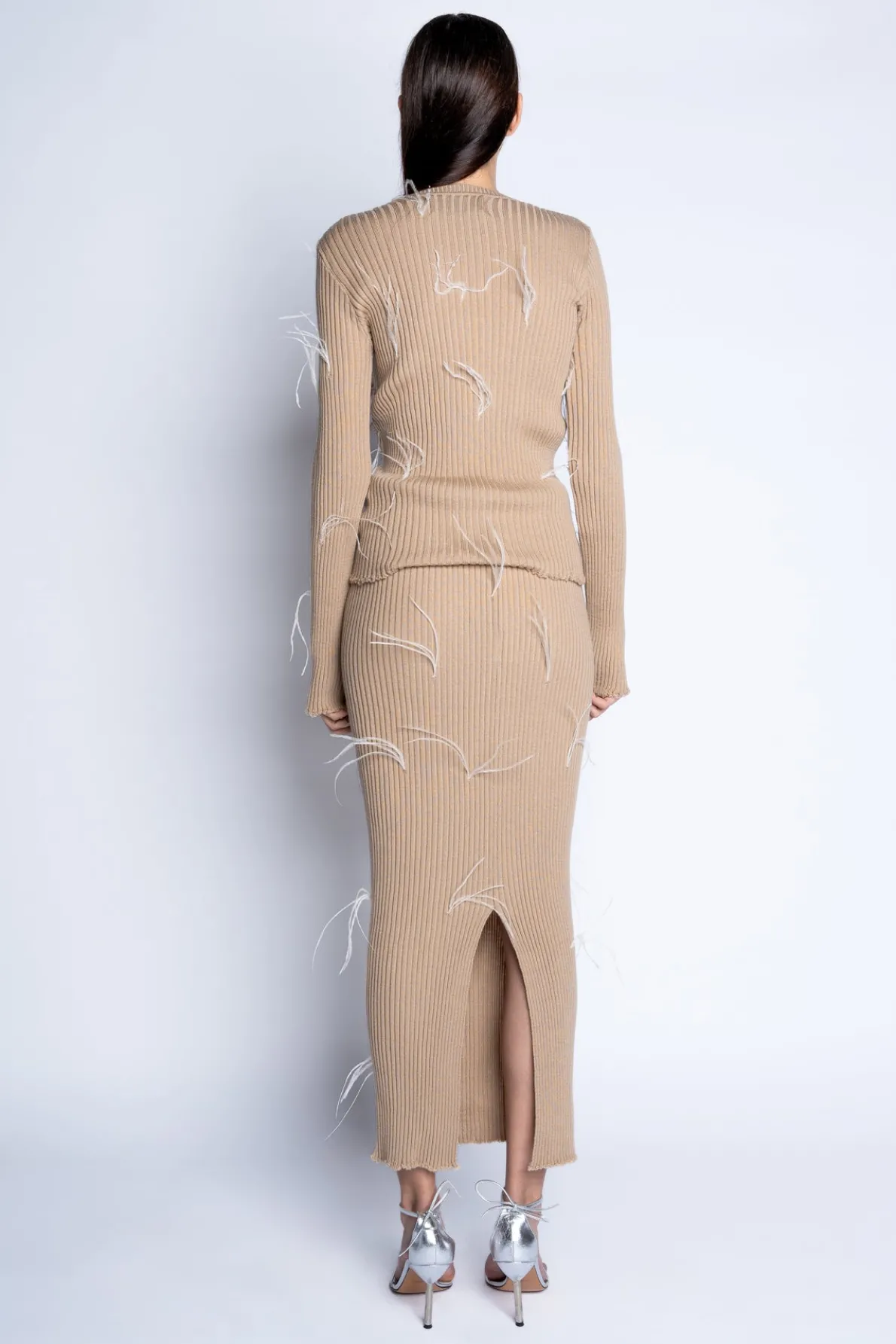 BEIGE MERINO WOOL FEATHER LONG SKIRT