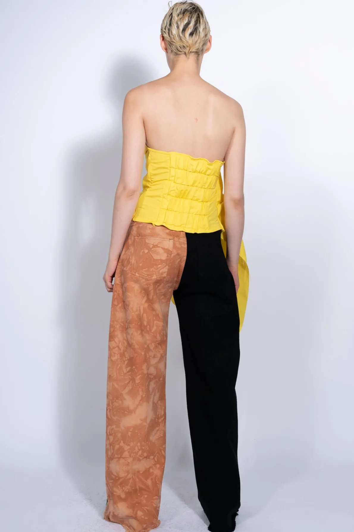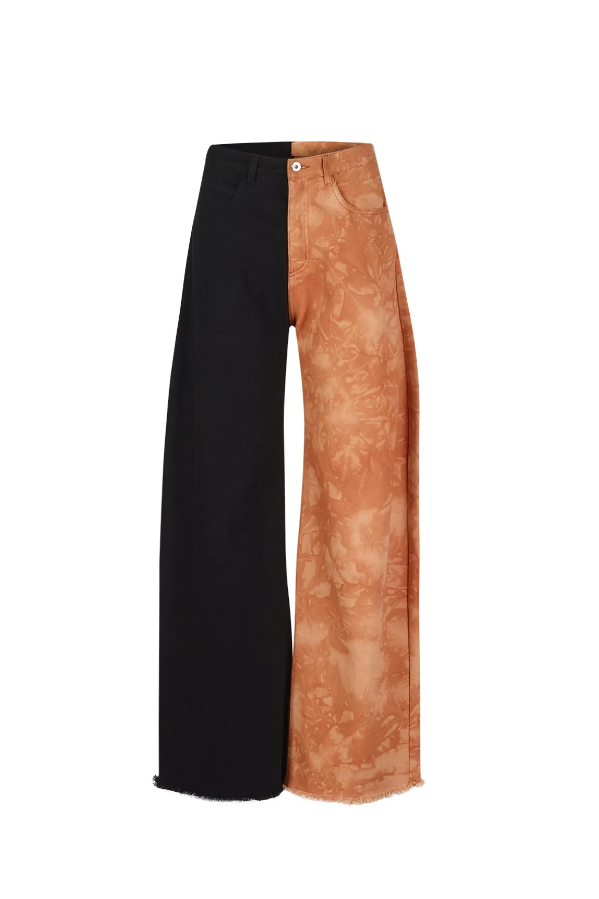 These stylish Boyfriend trousers combine the classic colors black and brown with pockets, a polished silver button at the front and a raw hem for a contemporary look.• Bicolor style• Oversized• Raw hem• Wide leg