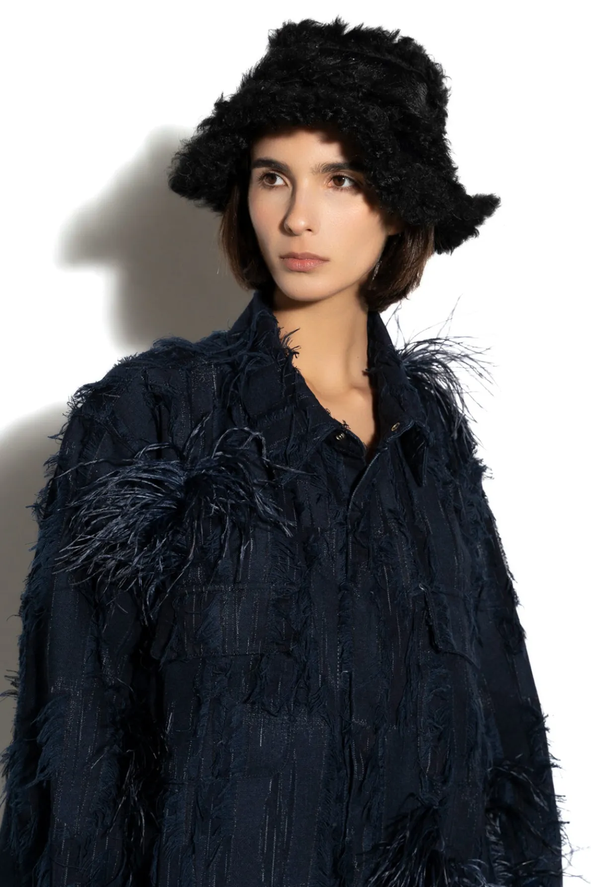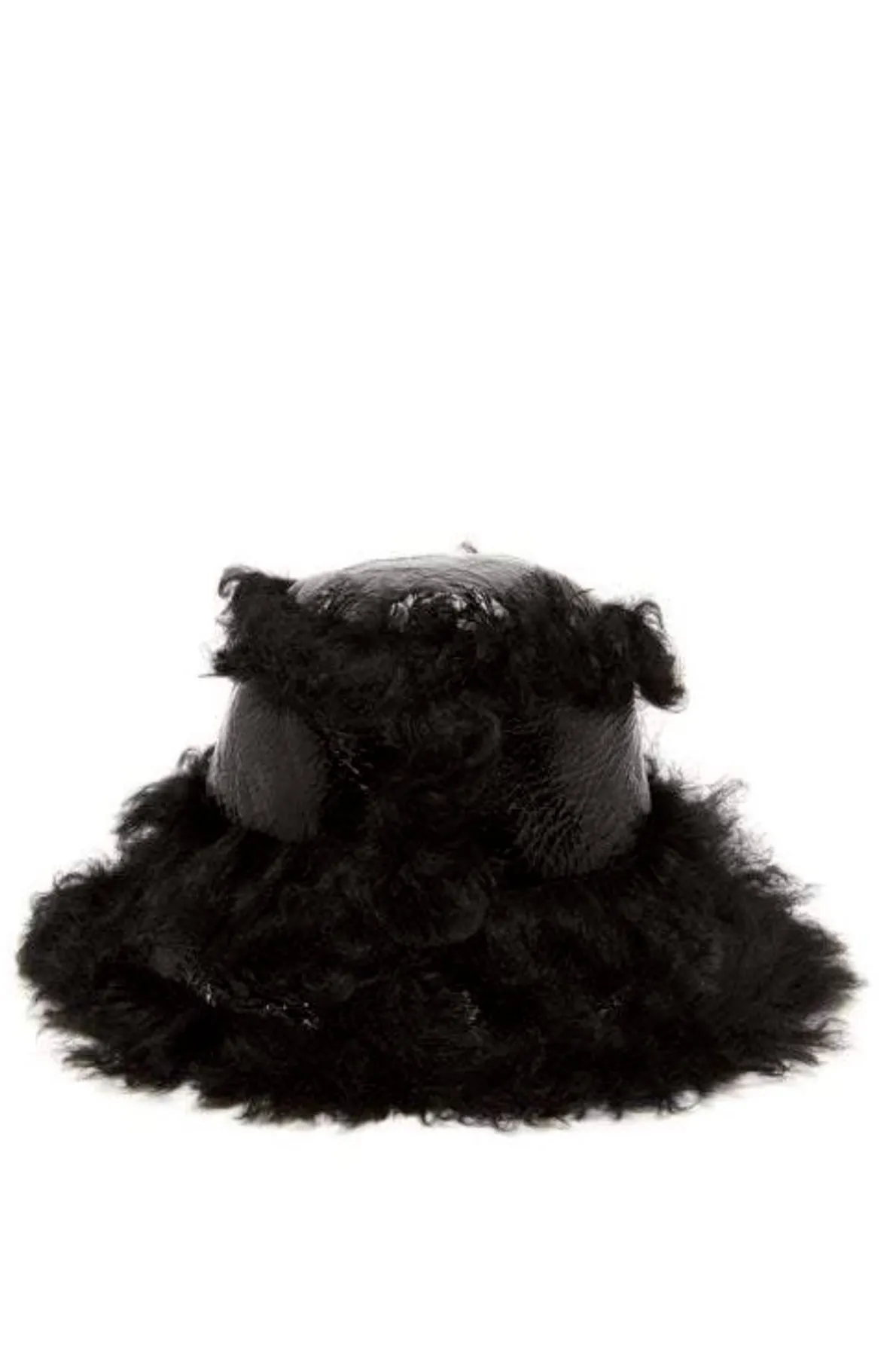 Gleaming leather, this bucket hat dares you to take risks! Push your limits while styling with a bold flair.• Black• Leather• Shiny• Fur