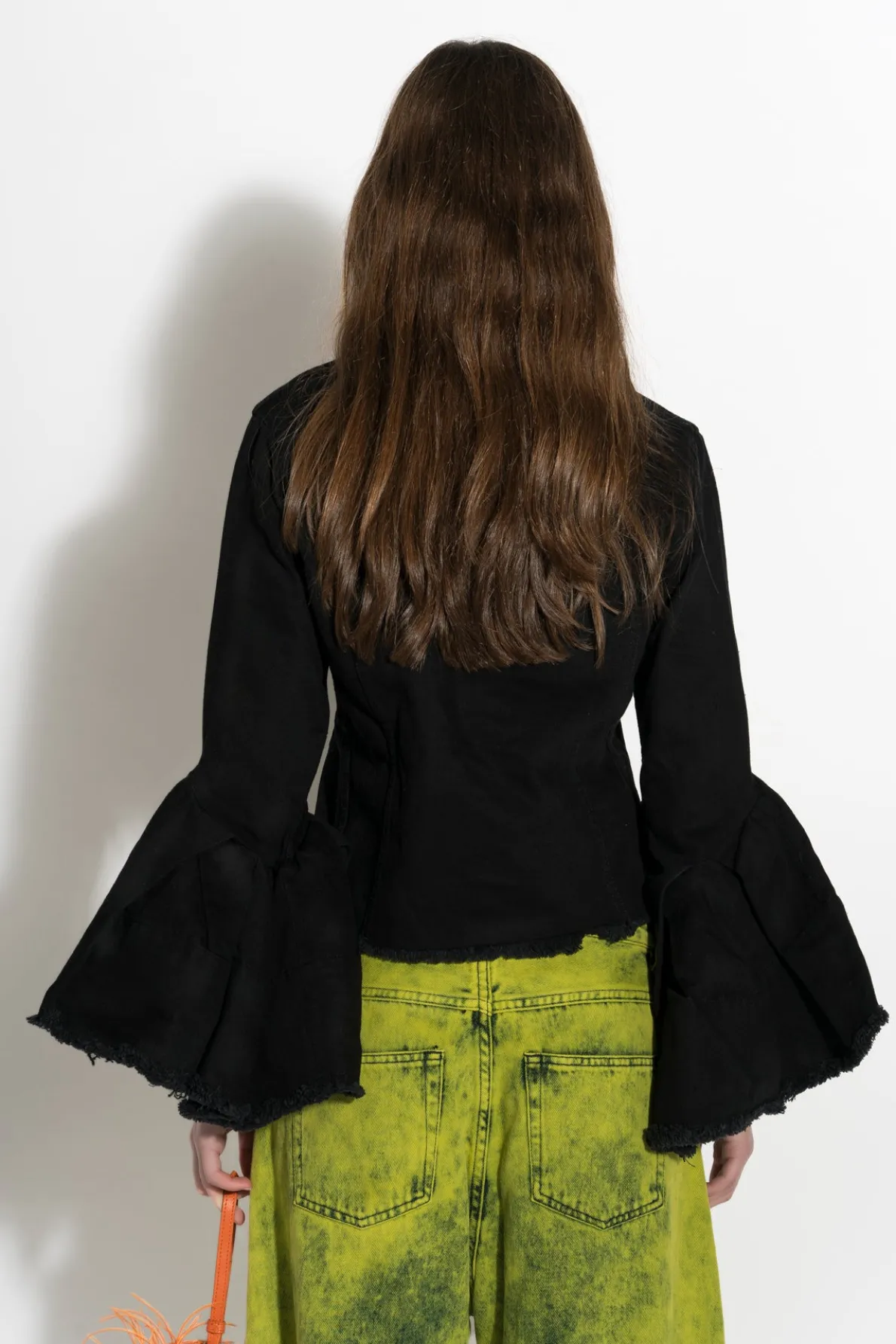 BLACK DENIM CLASSIC FITTED JACKET WITH BELL SLEEVES