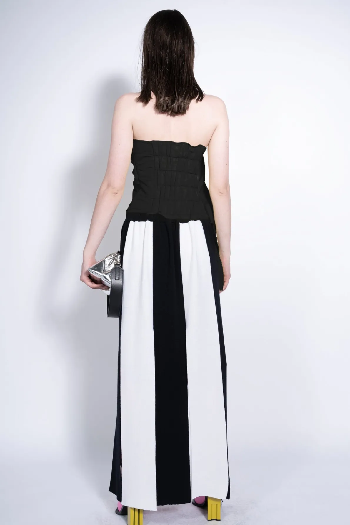A beautiful black taffeta corset crafted with intricate draping, a back zipper, and a front ruffle that adds a hint of flair.• Black• Draped• Back zipper • Front ruffle