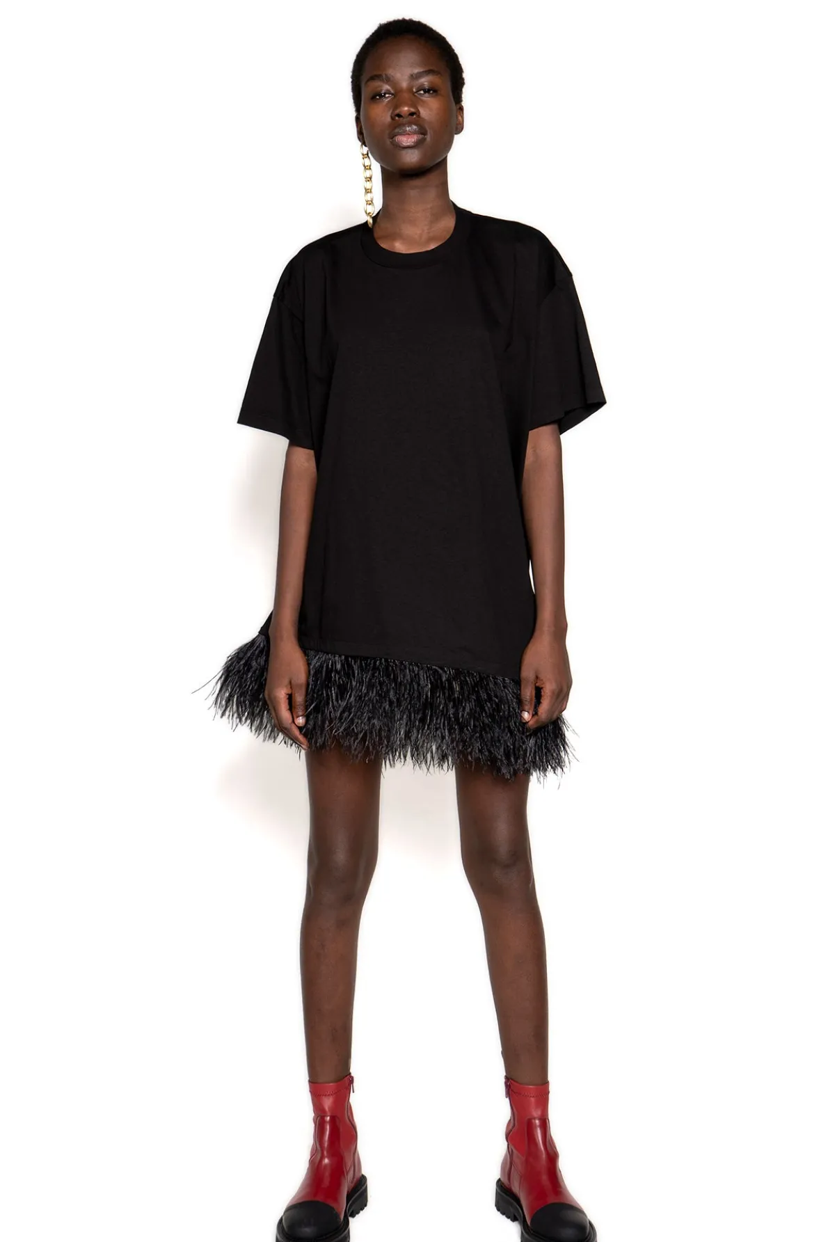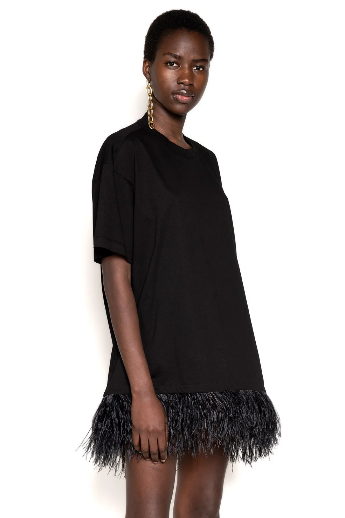 BLACK FEATHER HEM T-SHIRT DRESS