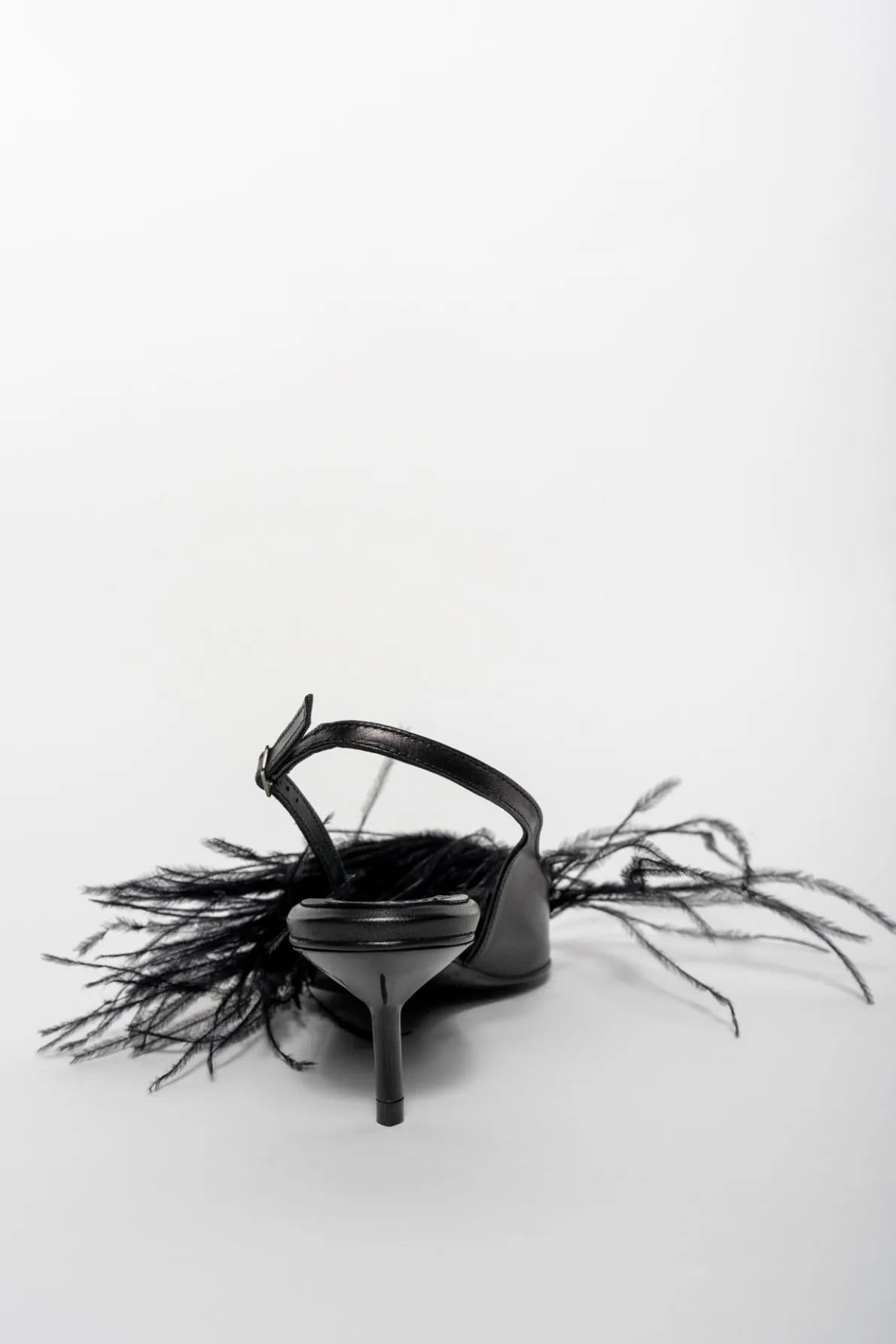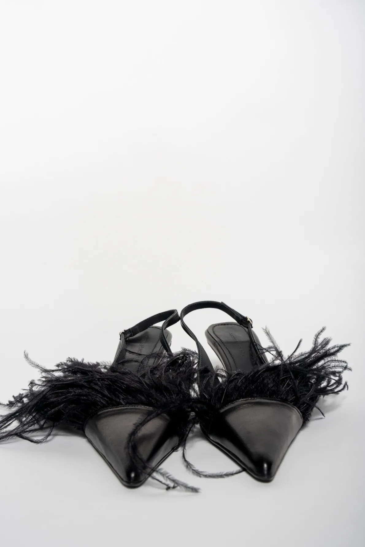 BLACK FEATHER SLING BACKS