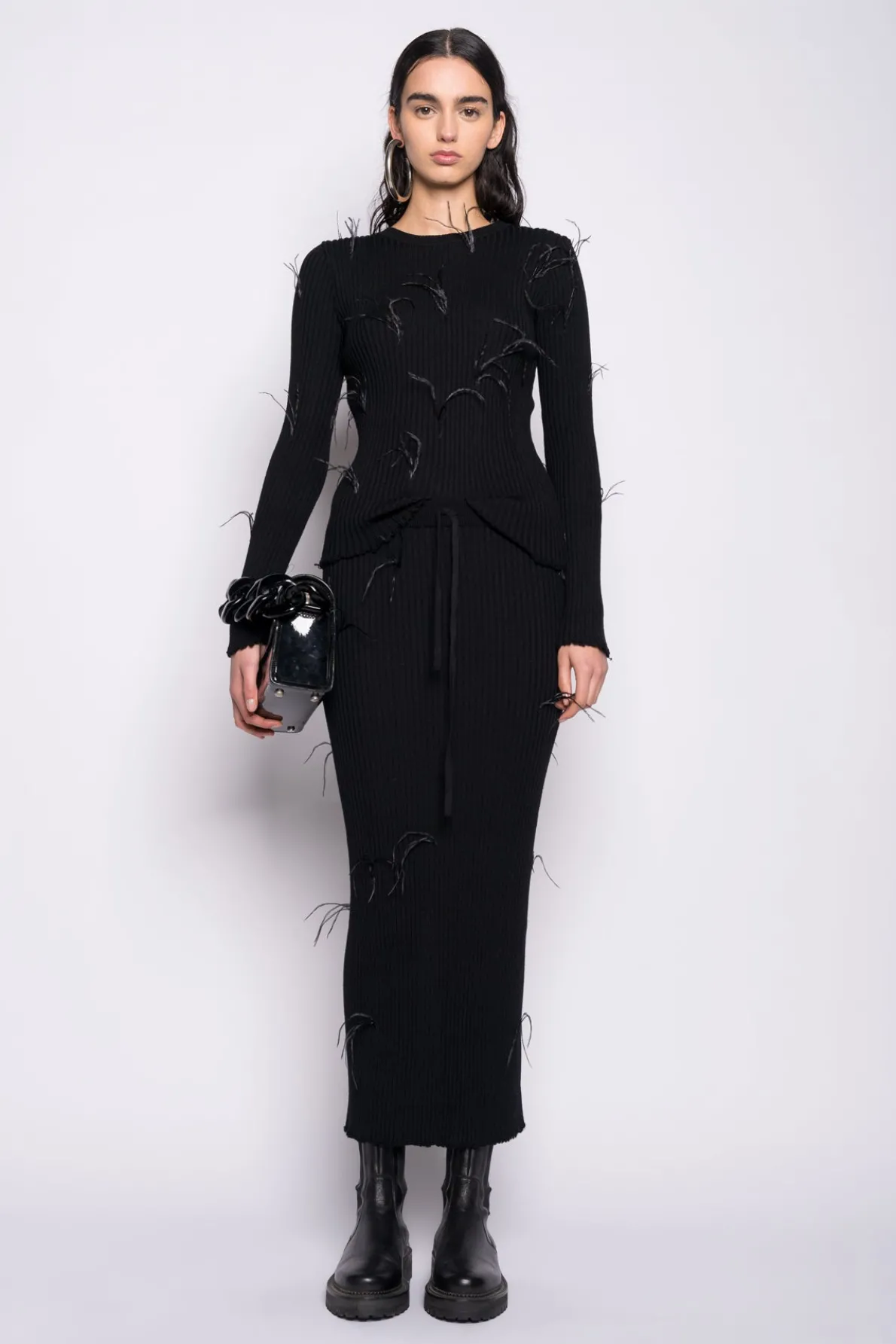 Description: Captivate in the long skirt crafted from sumptuous merino wool, boasting feather pulls, an elastic waistband, and an adjustable drawstring waist.• Long length• Feathers• Merino wool• Elastic waistband Fabric: Merino Wool 100% Merino wool with feathers size and fit: FittedRita is 5ft9 / 180 cm and is wear
