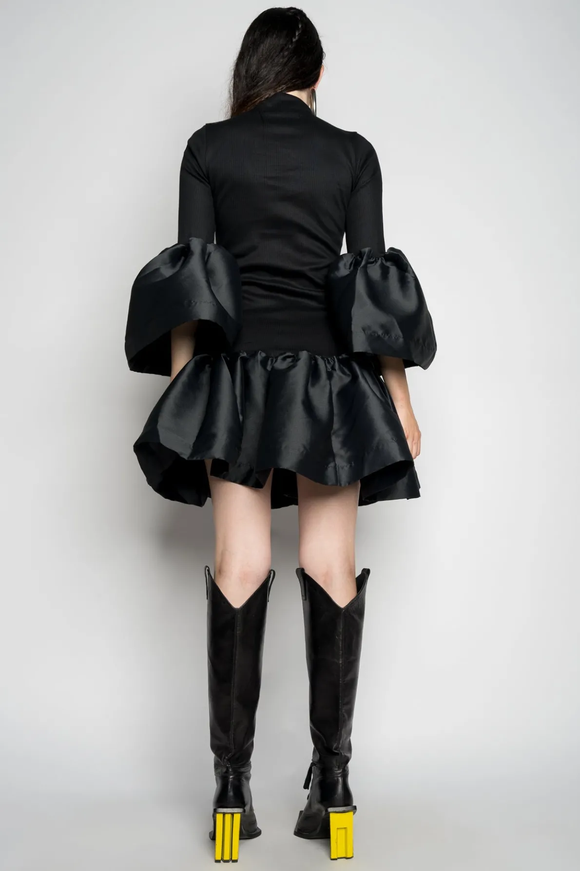 BLACK PUFF SLEEVE AND HEM DRESS