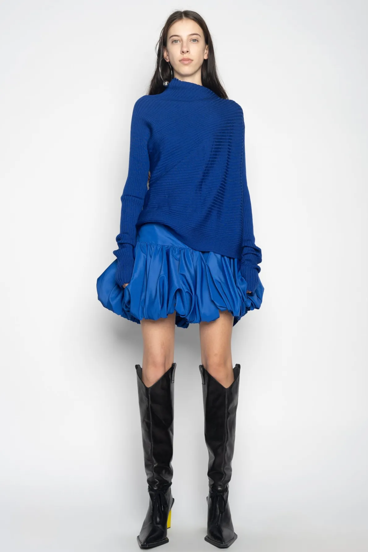 BLUE DRAPED JUMPER IN MERINO KNIT