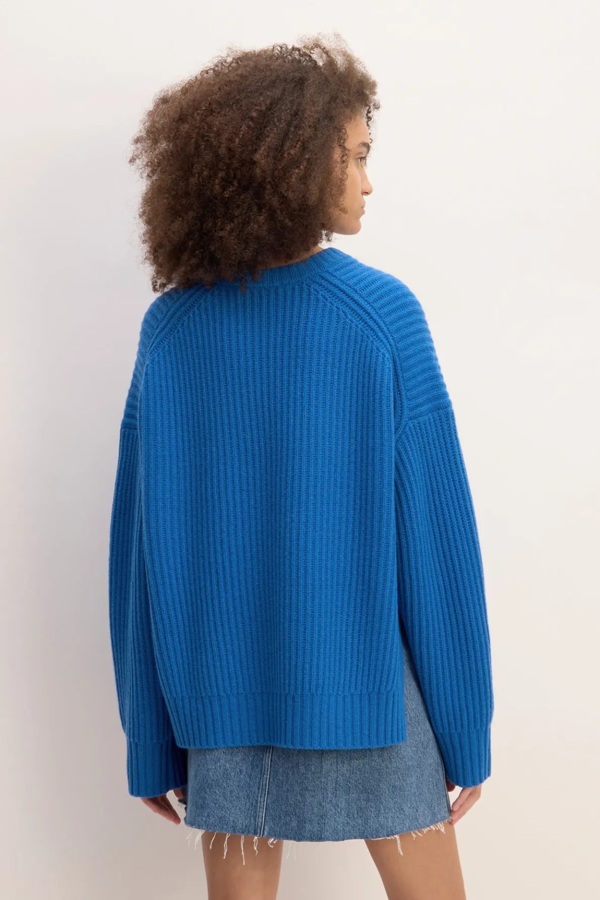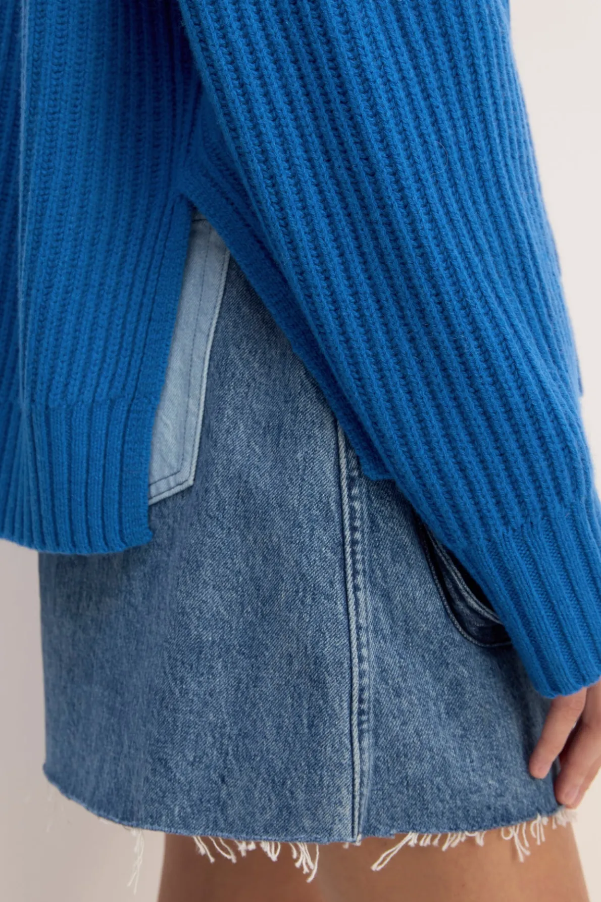 Indulge in the cozy comfort of our Blue Knit Jumper, with its boxy fit and thick rib-stitched hem and neckline. Get ready to feel stylish and warm all at once with this must-have addition to your wardrobe!• Blue• Boxy fit• Rib-stitched hem and neckline•Spaghetti strap