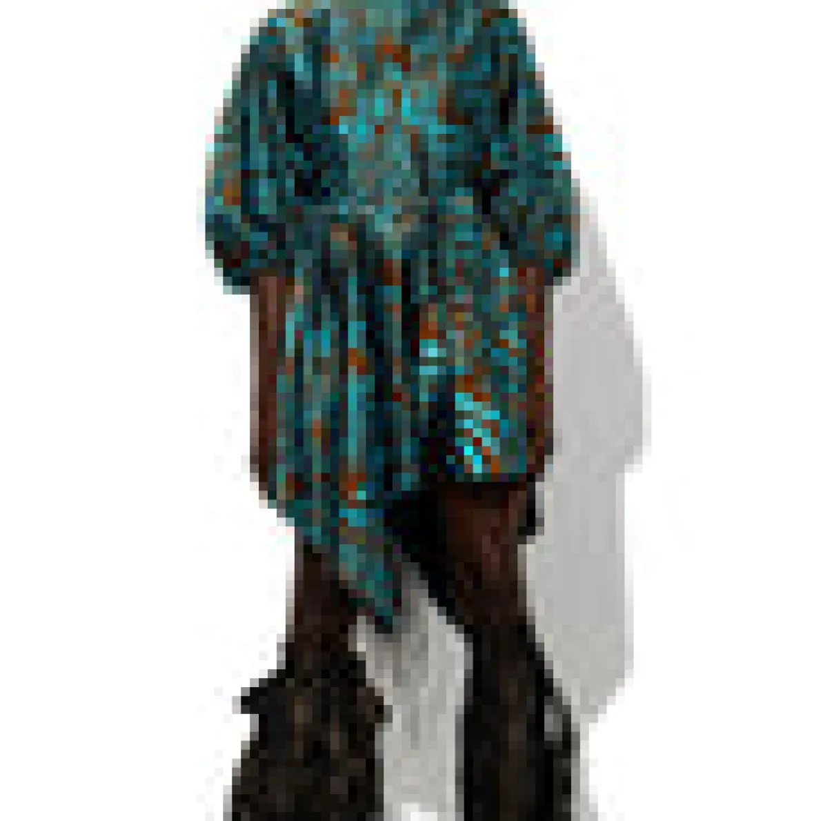 Description: Flaunt your style in this stunning blue zebra brocade dress! Featuring balloon sleeves, a round neckline, and an asymmetric hem, this showstopping dress will have you making a bold statement wherever you go! Fabric: Brocade 100% Acetate size and fit: True to size Angelica is 5ft11 / 1.82 cm and is we