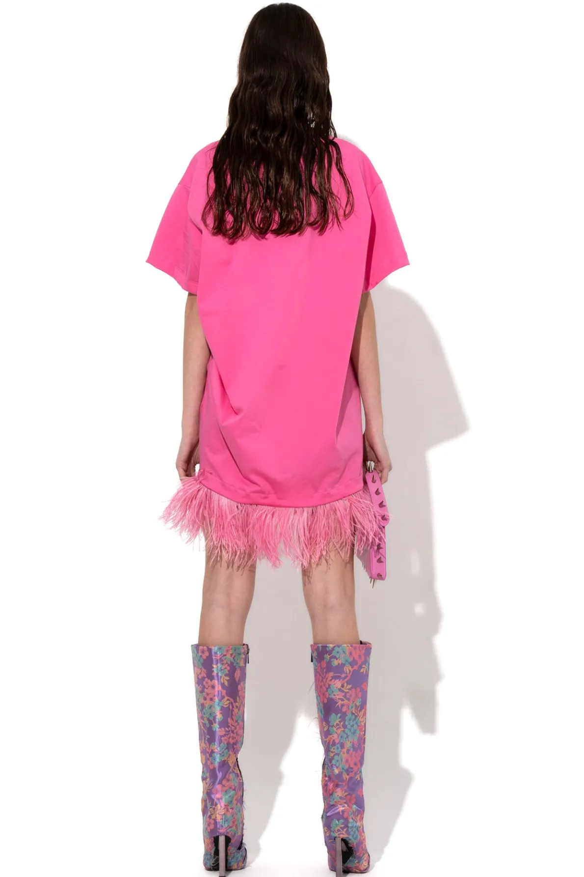 BRIGHT PINK FEATHER HEM T-SHIRT