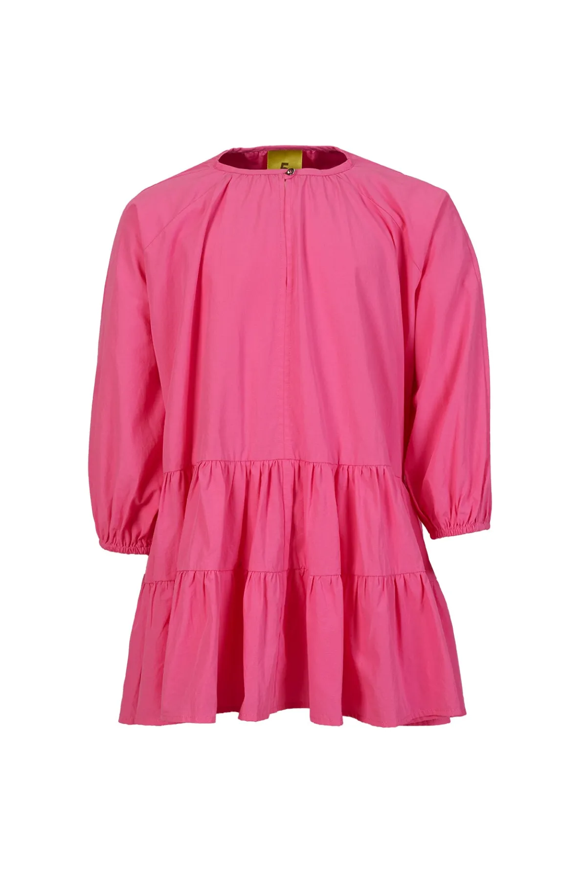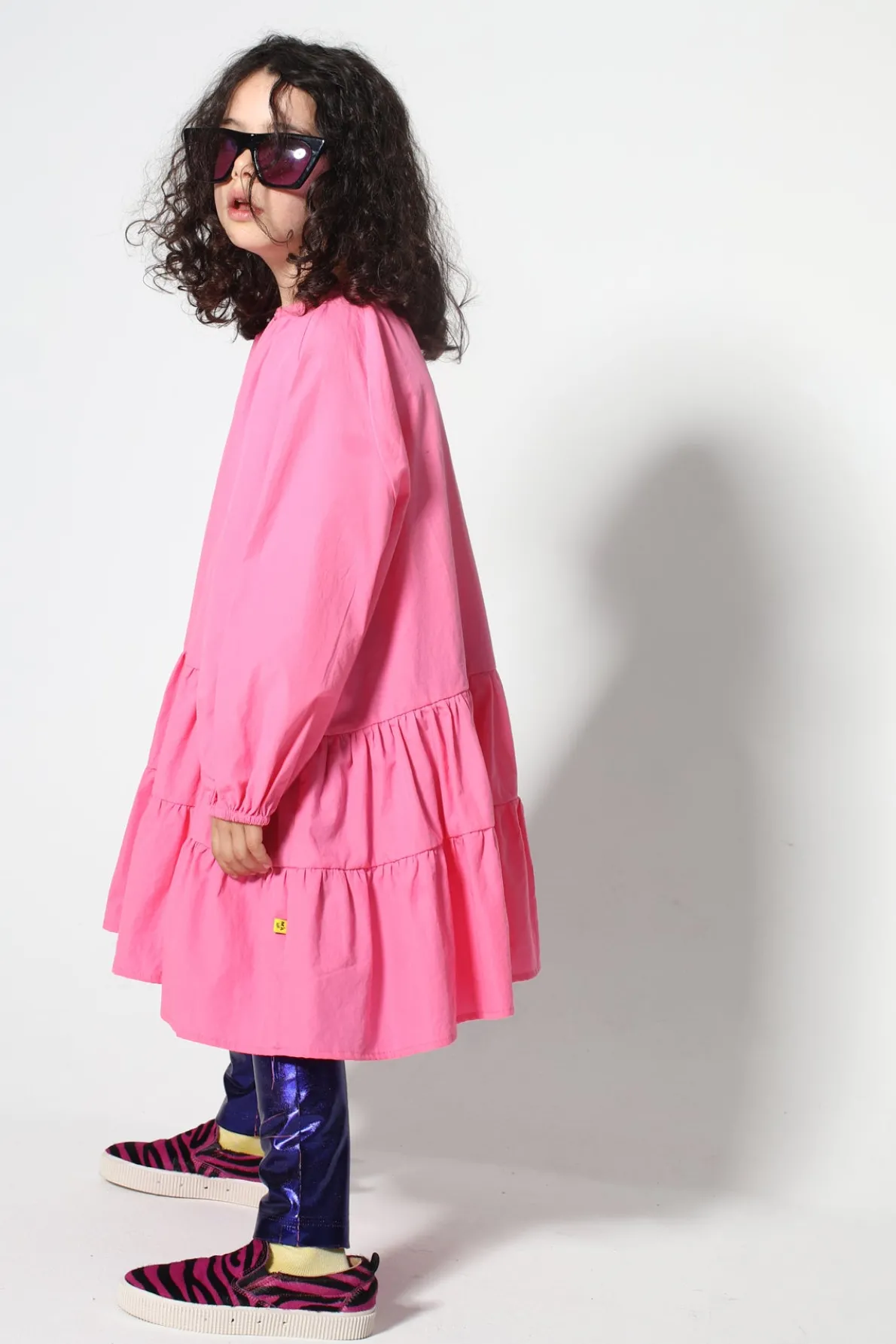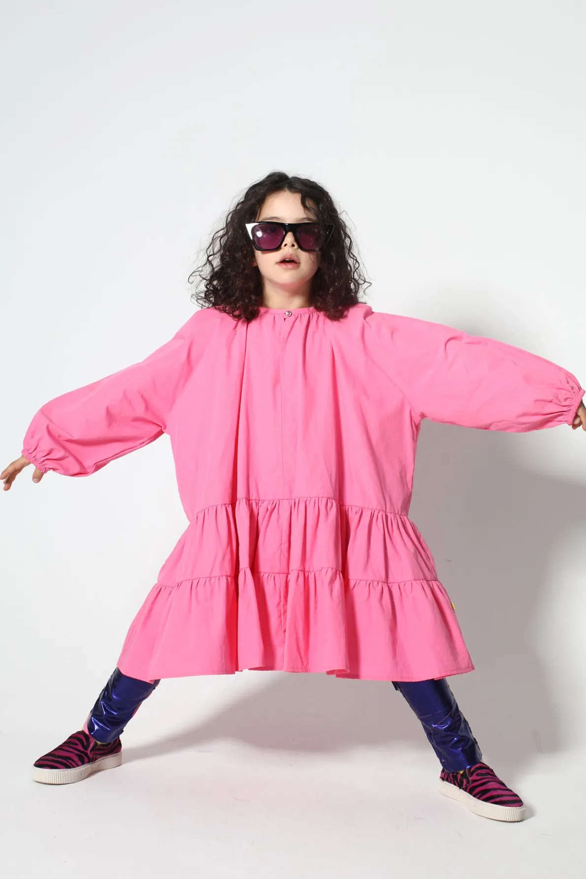 Bright pink cuteness in organic cotton, with a buttoned neckline, raglan-cut long sleeves, tufts, and a waist-and-skirt cinch – all for your kid!• Bright pink• Mid-length• Gathered• Buttoned round neckline