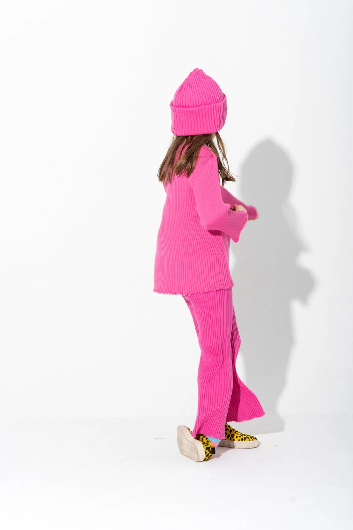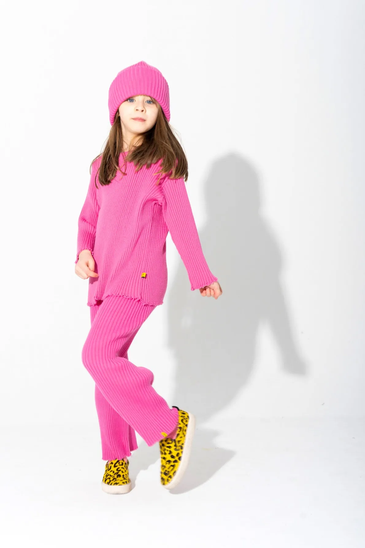 Stylish merino wool trousers featuring a drawstring fastening and fashionable raw hem, perfect for kids!• Bright Pink• Elastic waistband• Drawstring fastening• Raw hemline