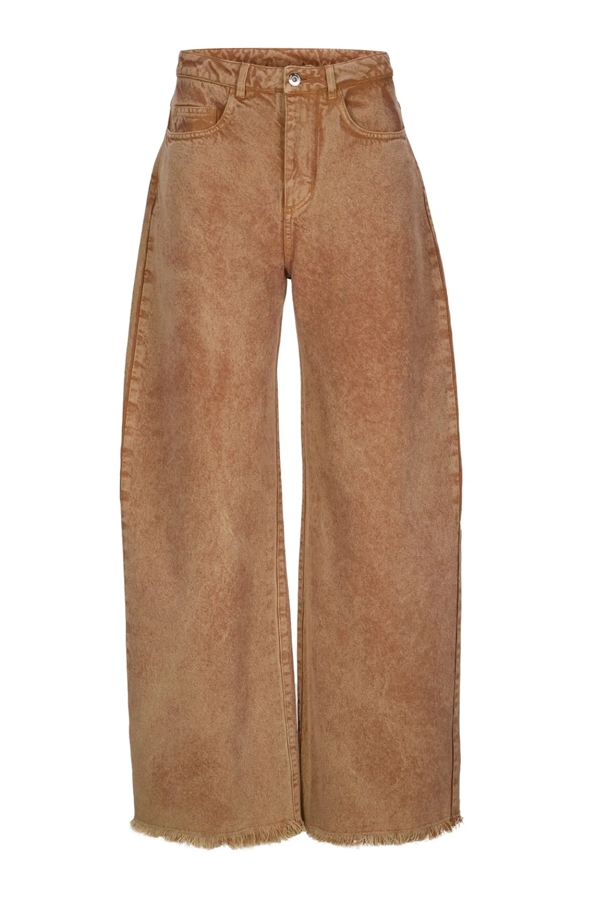 Be bold in these M'A 5-pocket boyfriend jeans in cool brown drill. These fashionable wide-leg trousers flaunt a comfortable relaxed fit with dropped waist and rise, as well as a raw hem.• Wide leg• 5 pockets• Raw hem• Relaxed fit