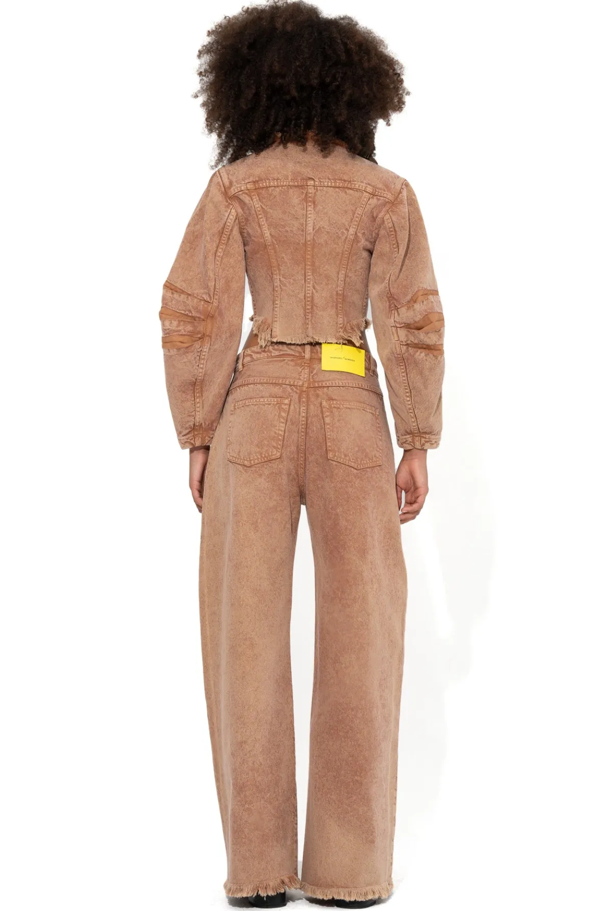Description: Rock this chic round-sleeved cropped jacket made of brown drill fabric! Boasting raw hems, snap buttons, and a round neckline, you'll make a stylish statement wherever you go.• Cropped• Round sleeves• Front snap buttons• Raw hem Fabric: Drill 50% Cotton, 25% Organic Cotton, 25% Post-Consumer Recycl