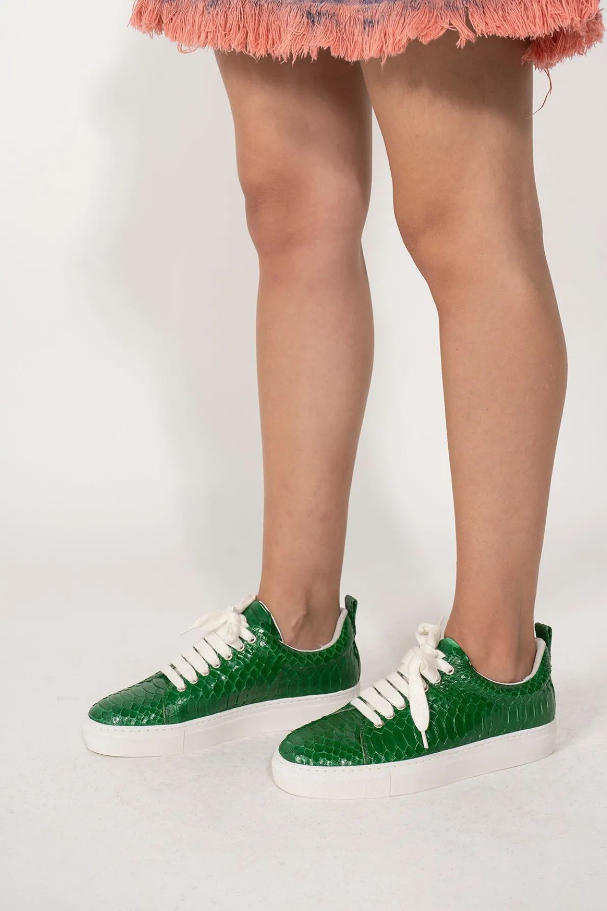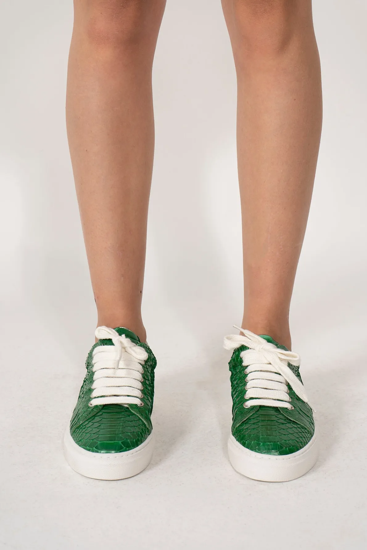 Description: Sophisticated green phyton sneaker with sleek white laces and a strong rubber sole: the perfect combination of fashion and function! Fabric: 100% Leather care instructions: – Store in a temperature-controlled environment as sunlight, extreme heat/cold or humidity can cause the leather to dry out, fa