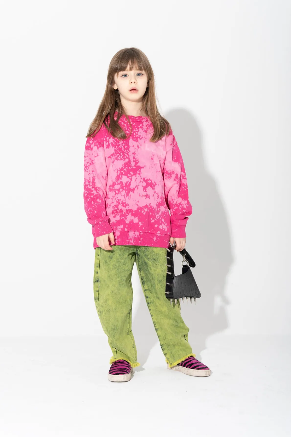 This fun and funky fuchsia and light pink fleece crew neck brings the splatter, complete with ribbed cuffs and hems for kids!• Splattered• Fuchsia and light pink• Long sleeves• Ribbed cuff and hem