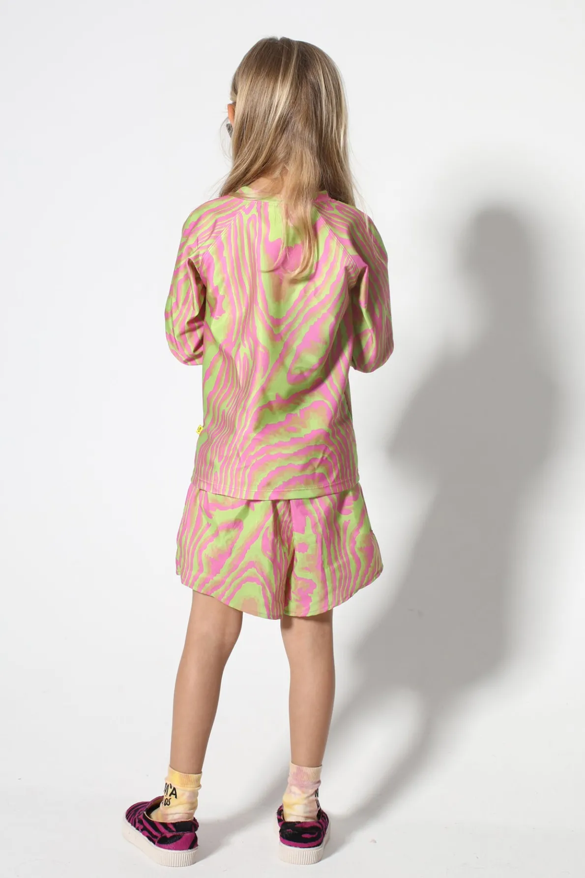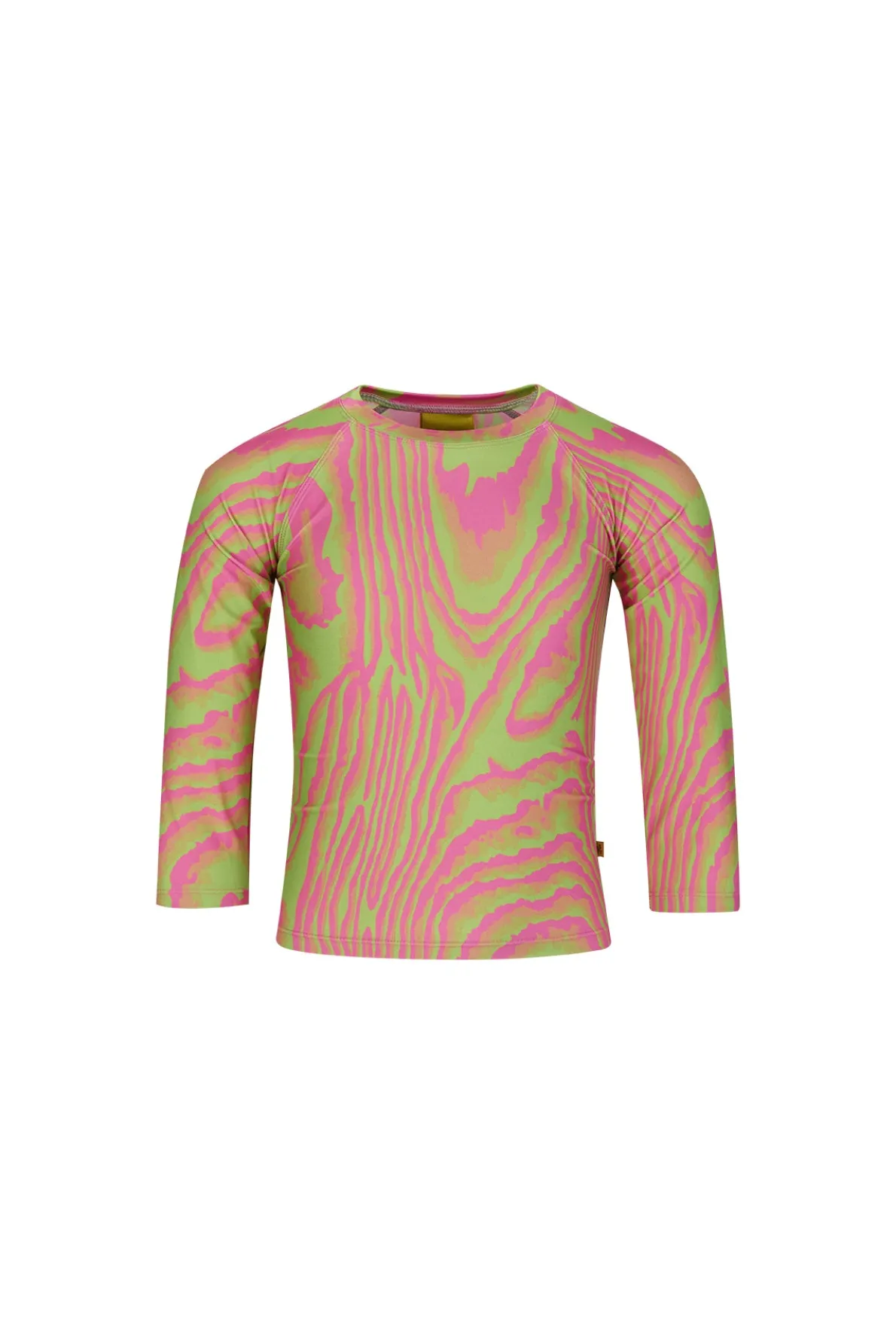 Rockin' swimwear top in green 'n' pink, printed with long sleeves and an elastic round neckline – perfect for kiddos!• Green and pink• Printed• Long sleeves• Elastic