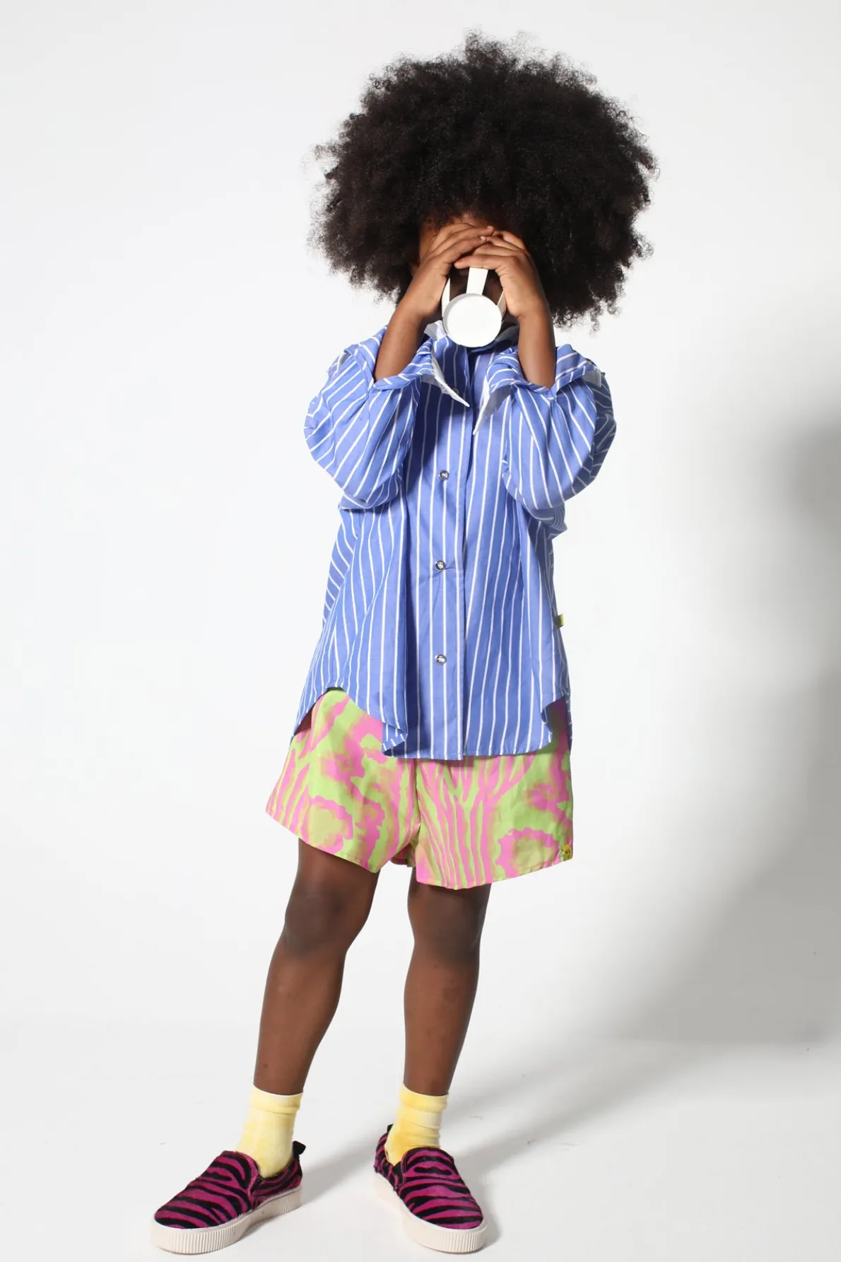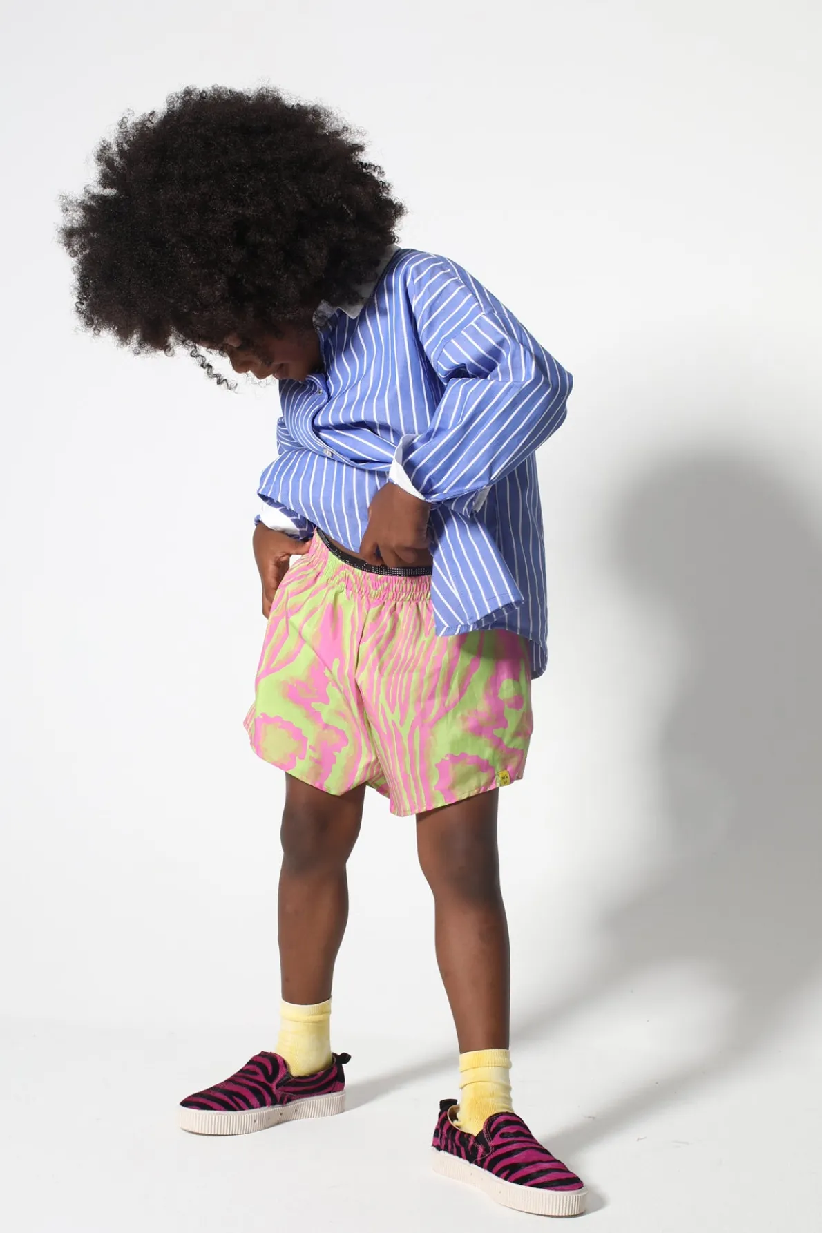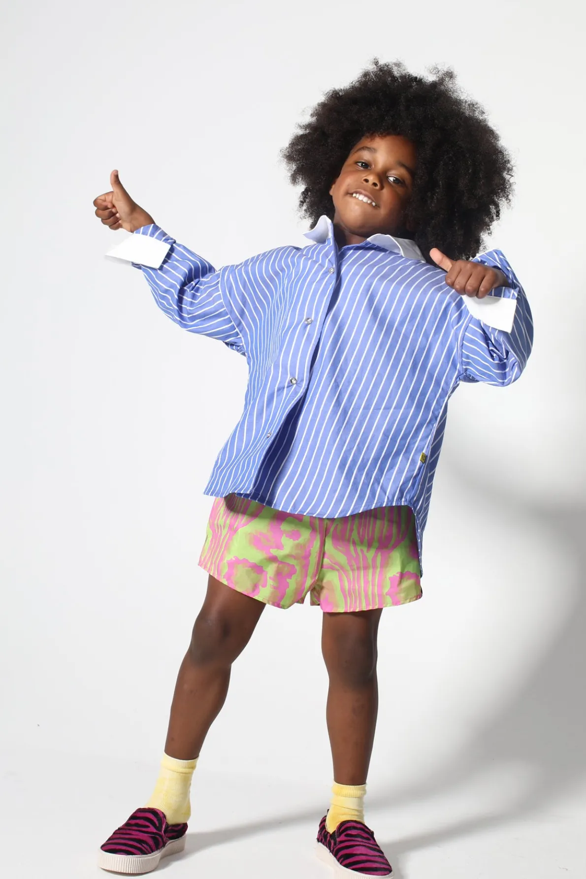 Make a splash in these playful pink and green print swimwear shorts, featuring a comfy elastic waistband – perfect for getting your kid on!• Pink and green print• Elastic waist• Recycled Polyester• Short length