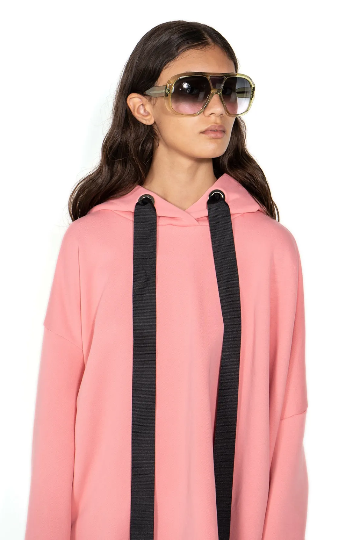 These timeless aviator sunglasses boast vibrant green frames and striking black-to-pink gradient lenses, sure to make a modern yet classic statement.• Green frame• Gradient black lenses• Oversized shape• Silver logo