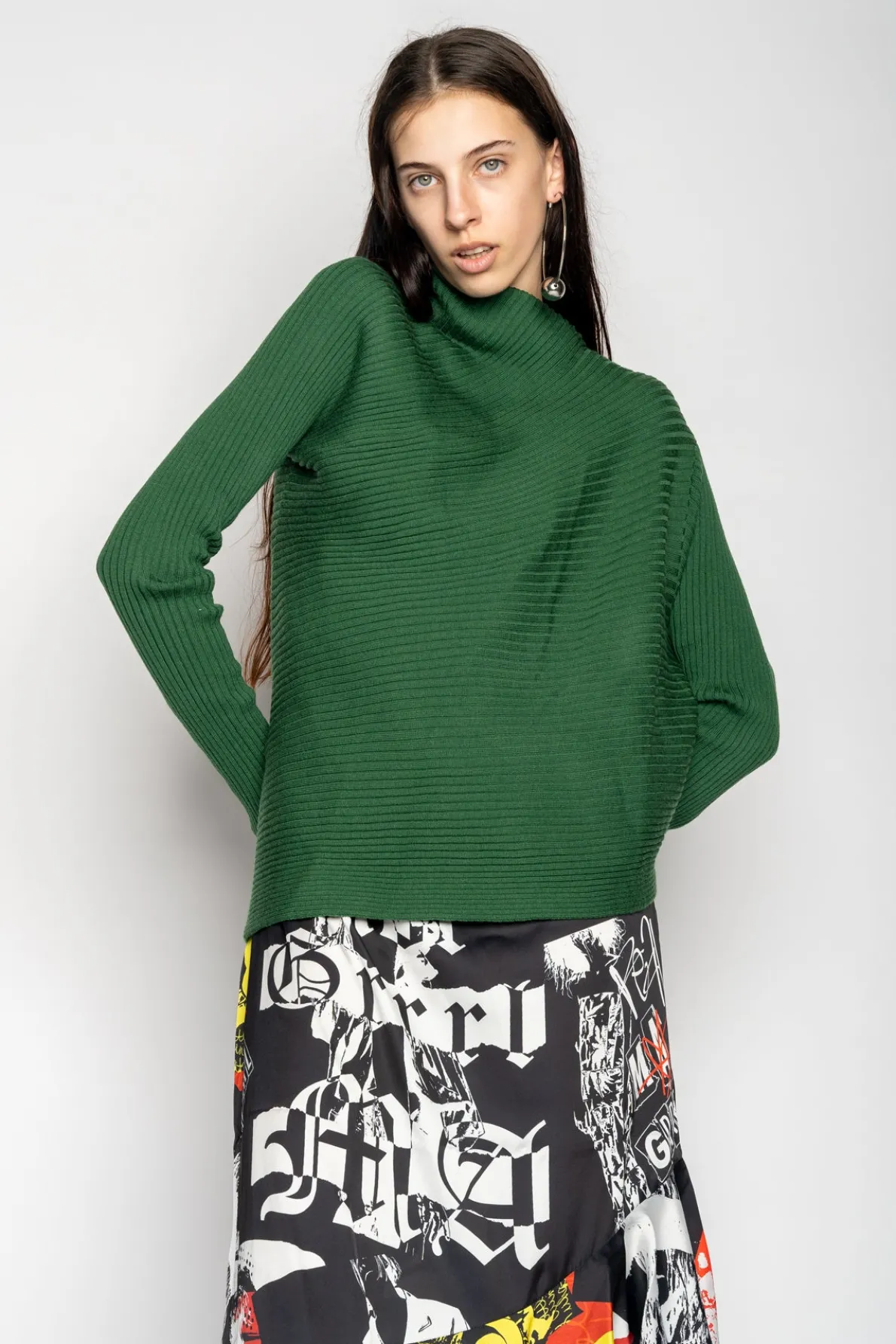 GREEN DRAPED JUMPER IN MERINO KNIT
