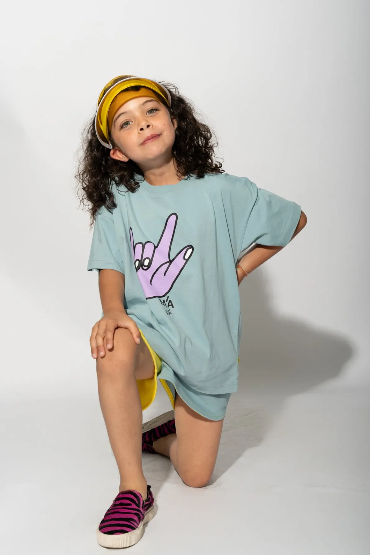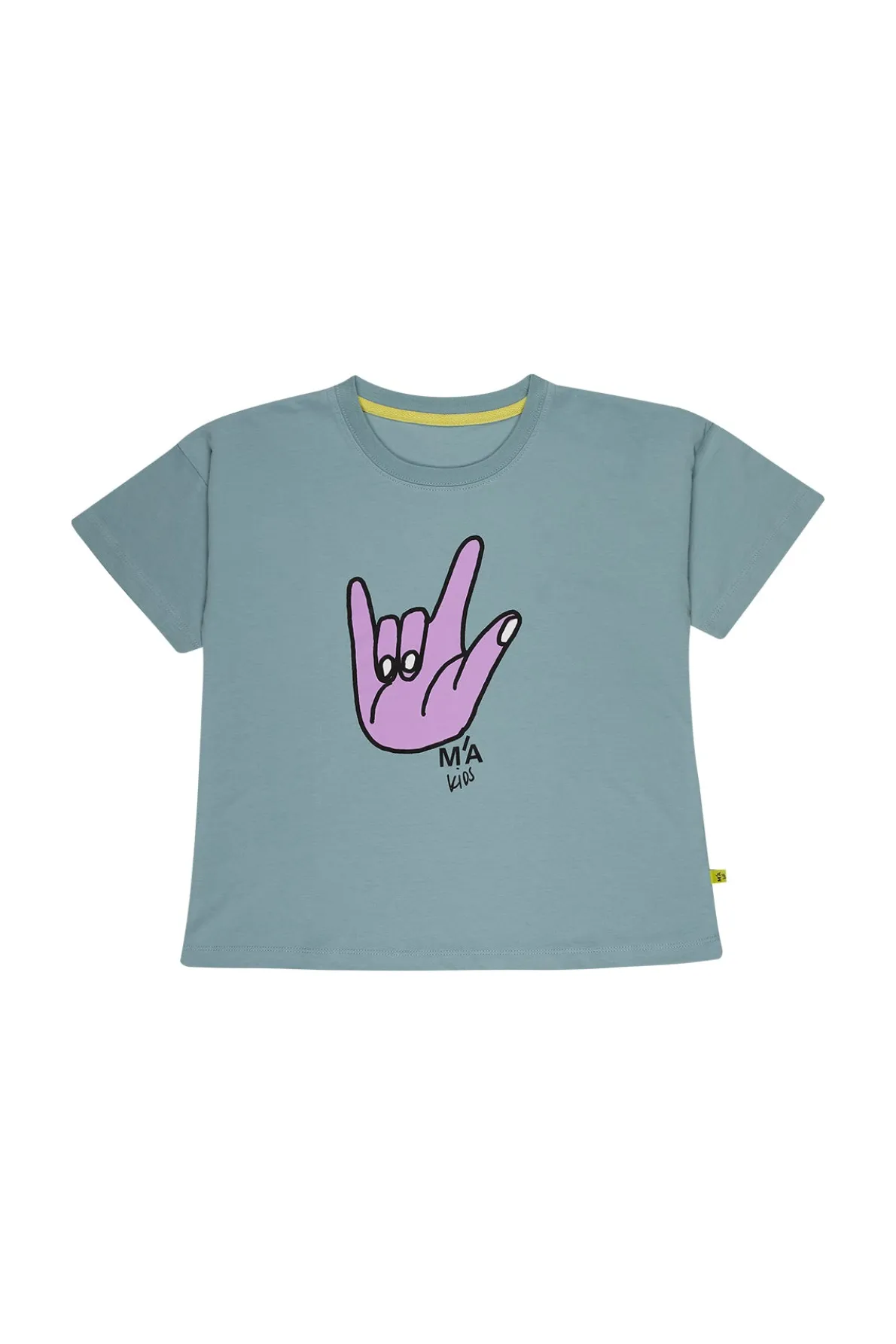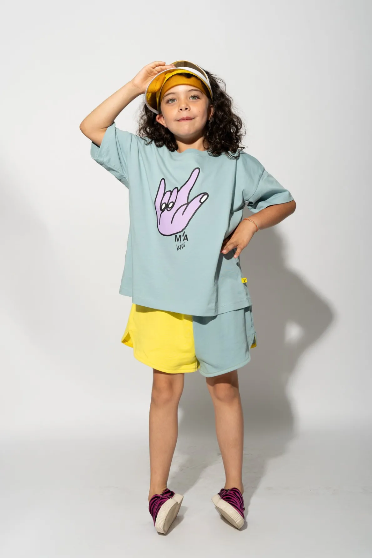 With its vibrant turquoise colour and hand print design, it's sure to be a head-turner wherever your kid wears it. And with its comfortable jersey fabric, short sleeves, and round neck, it's perfect for all-day play time. Get your hands on this must-have tee for kids!• Turquoise• Hand print• Short sleeves• Round neck