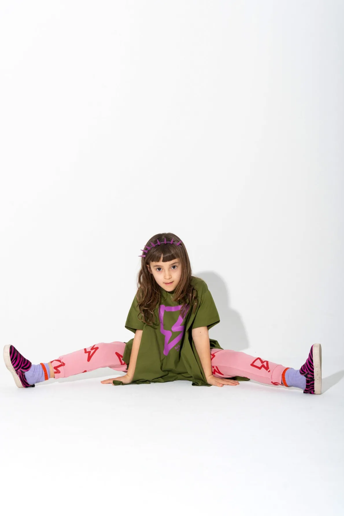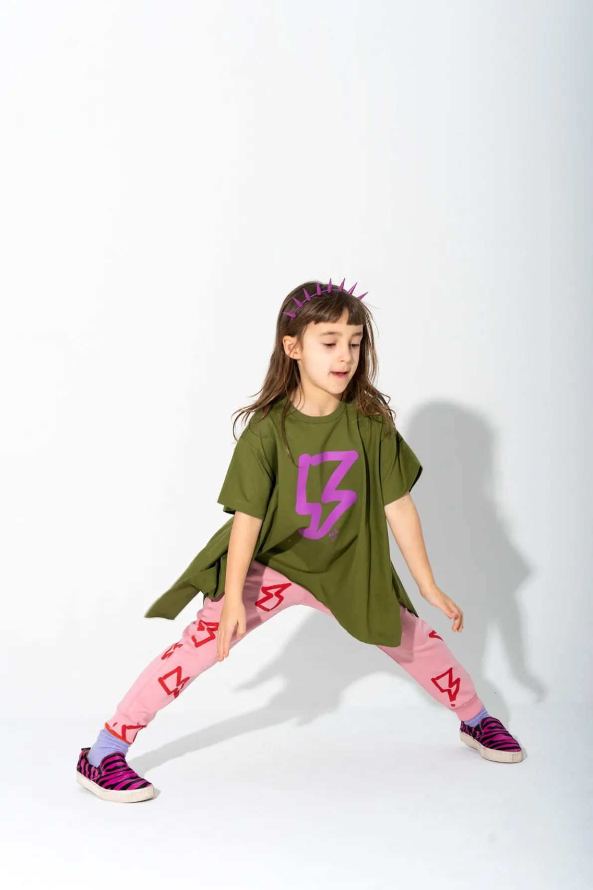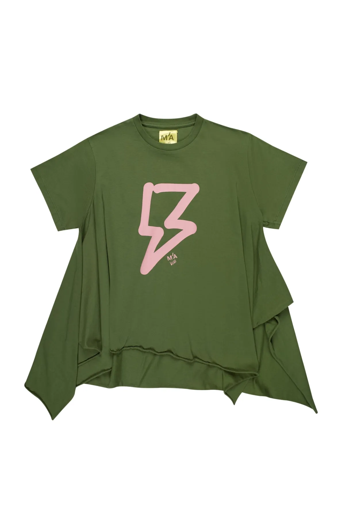 T-shirt that's ready to rumble in khaki jersey with a pink thunder print on the front, side flaps that flap in the breeze, and a round neckline that's sure to start a storm of compliments. Let's get electric!• Thunder print• Side flaps• Short sleeves• Round neck