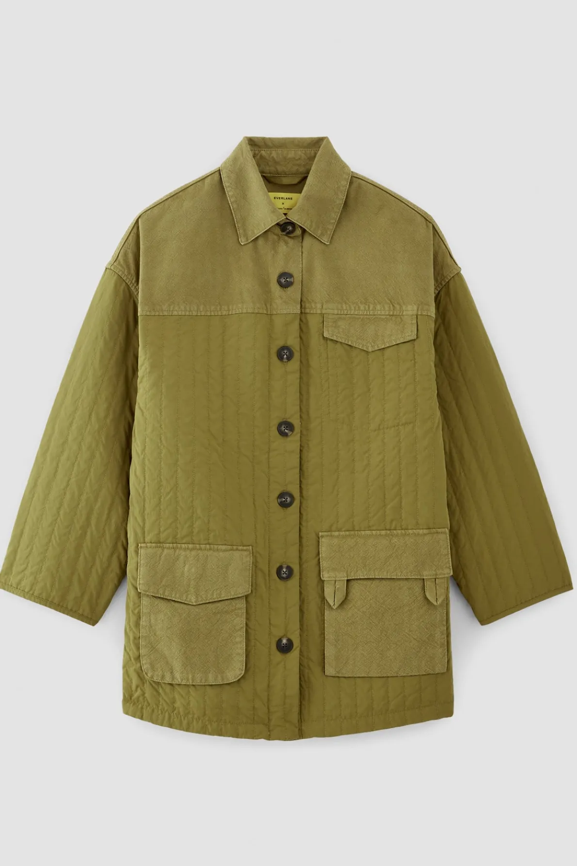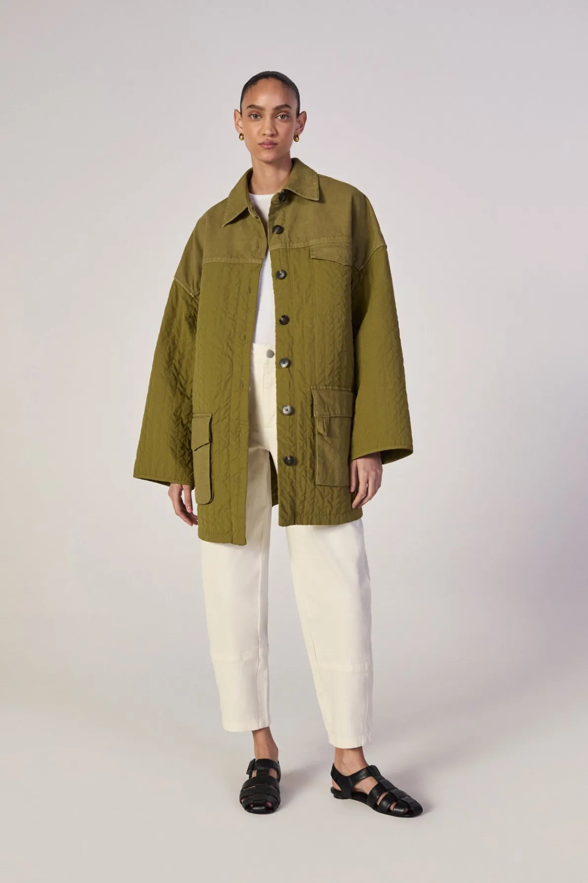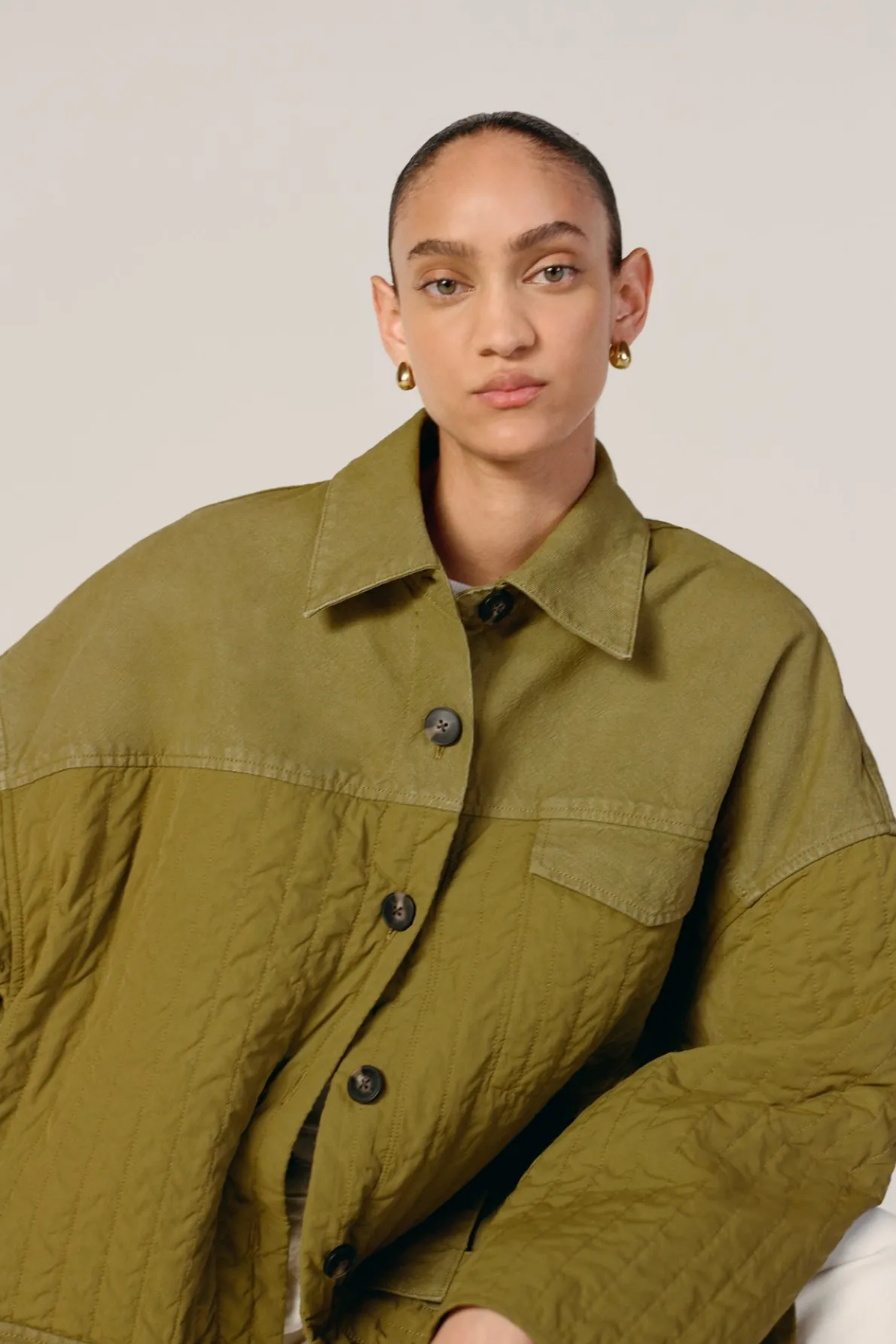 Experience the timelessness of our khaki patchwork cotton overshirt – boasting a oversized silhouette, front patch pockets, and pointy neckline that will make a lasting impression.• Patchwork• Oversized• Front patch pockets• Frayed hems