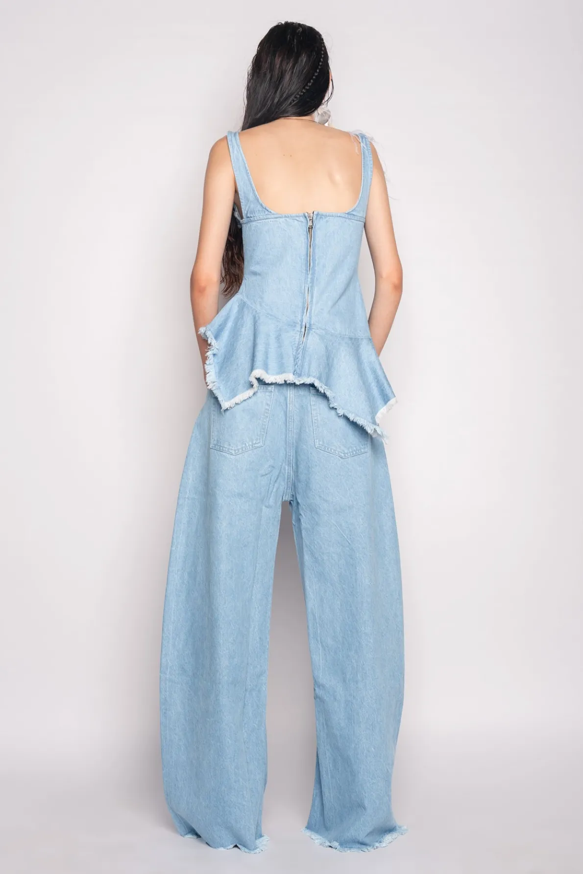 LIGHT BLUE PATCH POCKET BOYFRIEND TROUSERS