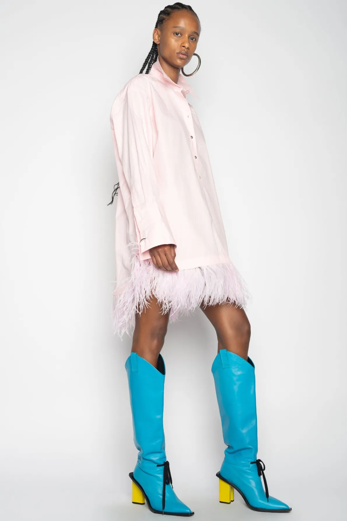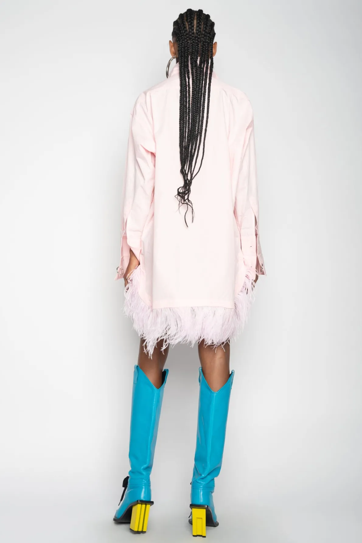 LIGHT PINK FEATHER HEM SHIRT DRESS