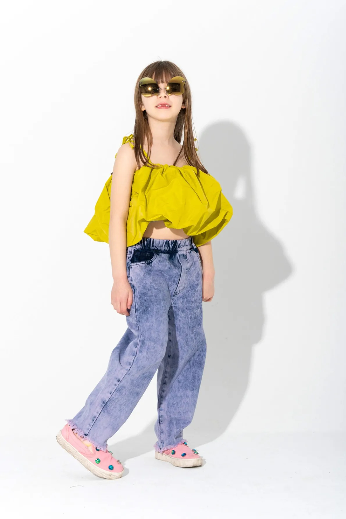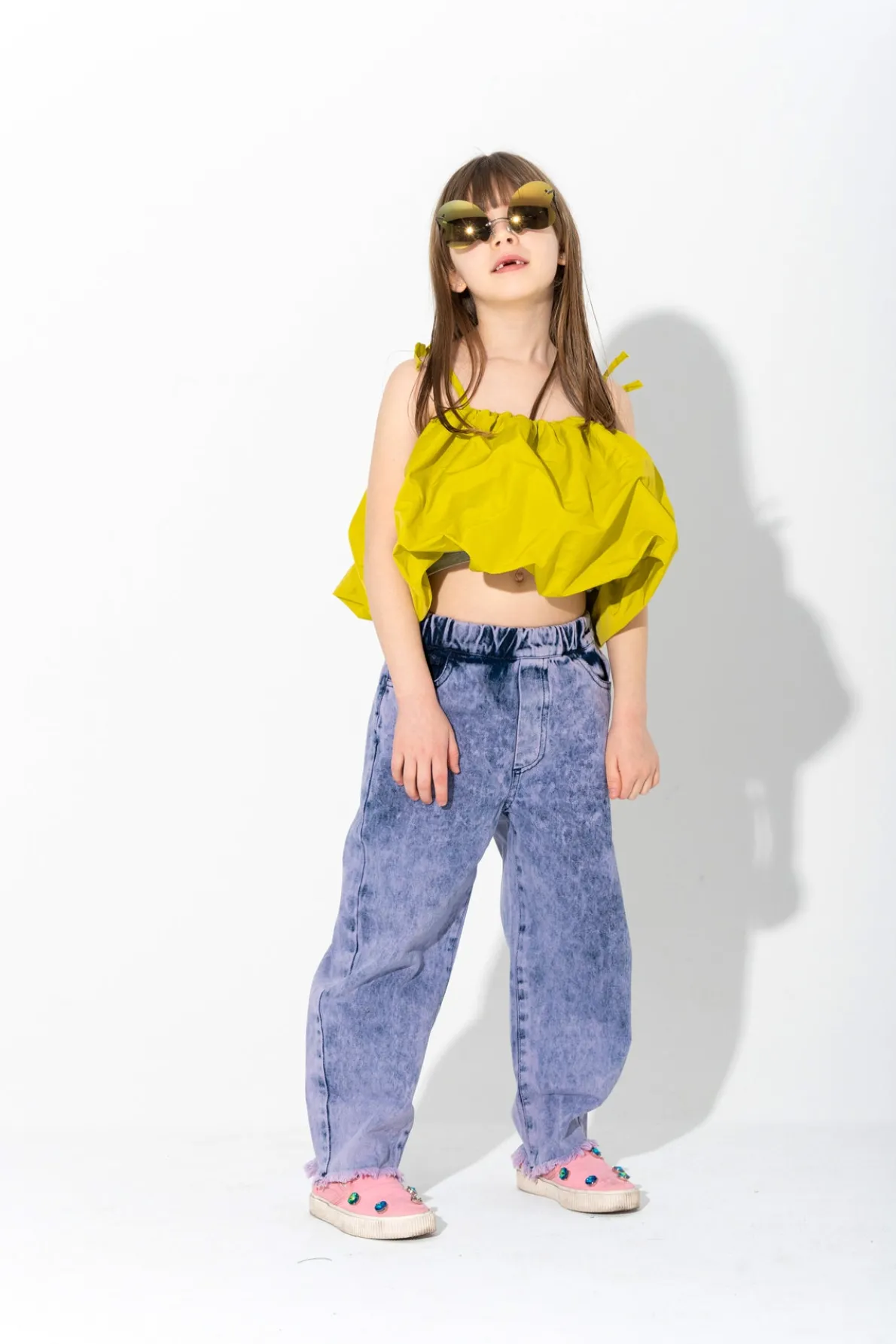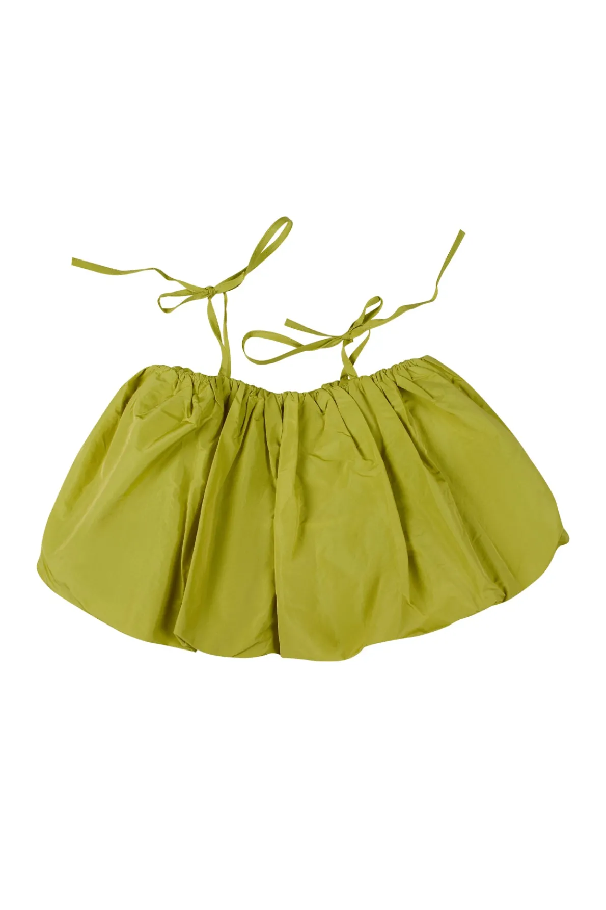 Cropped balloon top in lime taffeta with straps This eye-catching piece is perfect for those special occasions when you want to stand out. Make a statement with this stylish and unique top it'll put the fun in any outfit!• Lime• Slip top• Balloon• Cropped
