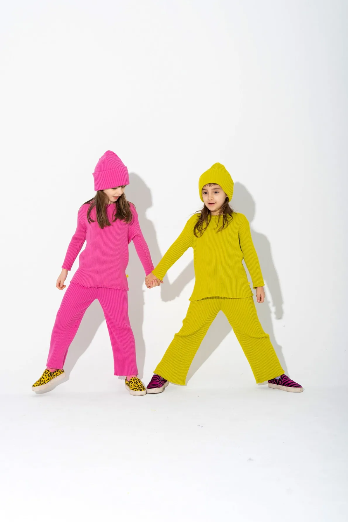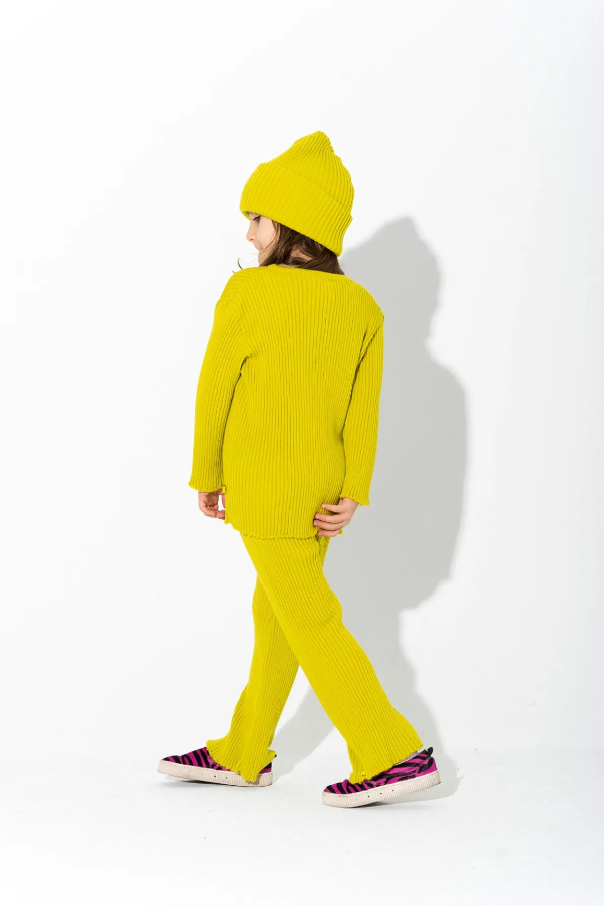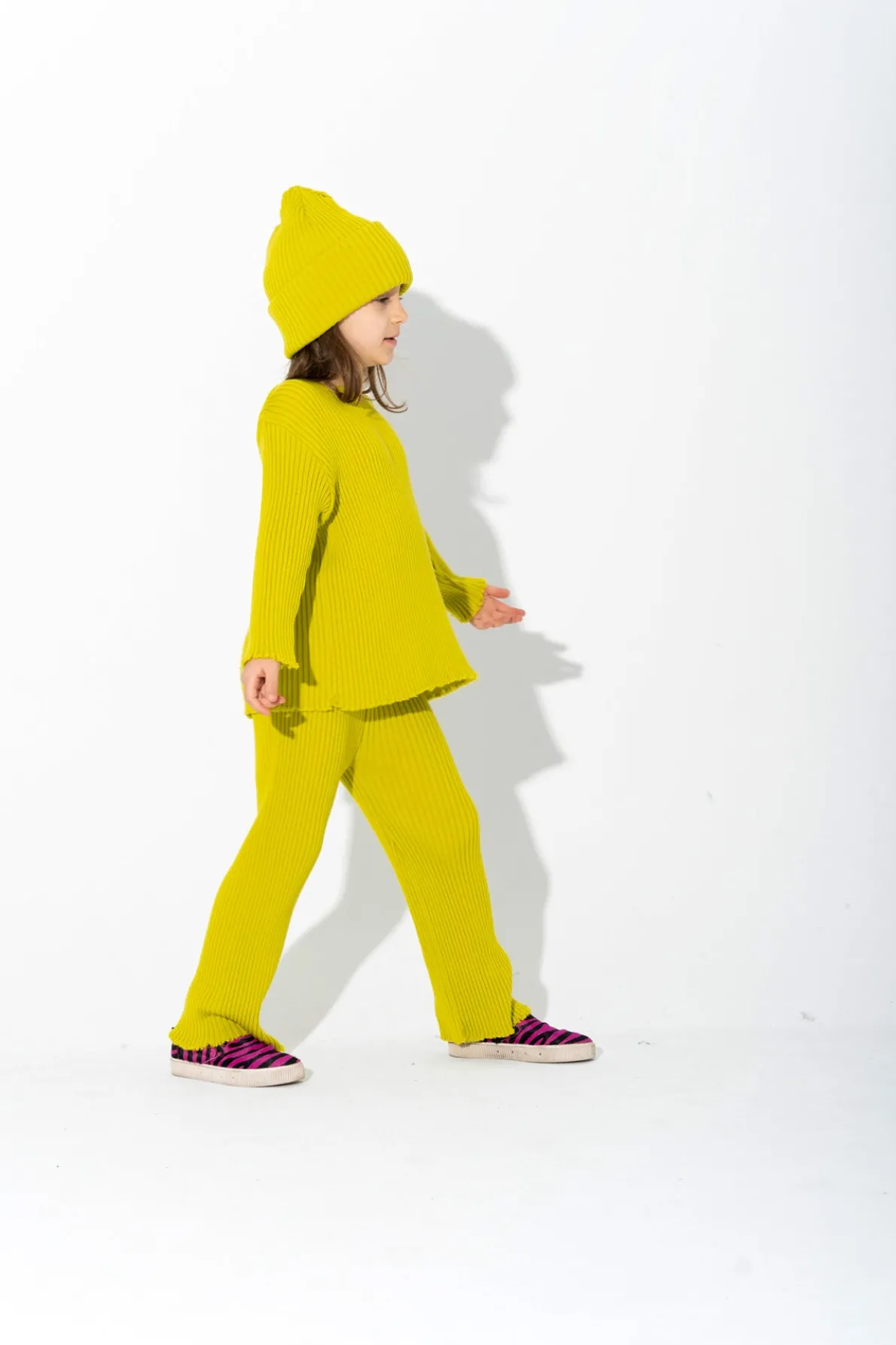 Stylish merino wool trousers featuring a drawstring fastening and fashionable raw hem, perfect for kids!• Lime• Elastic waistband• Drawstring fastening• Raw hemline
