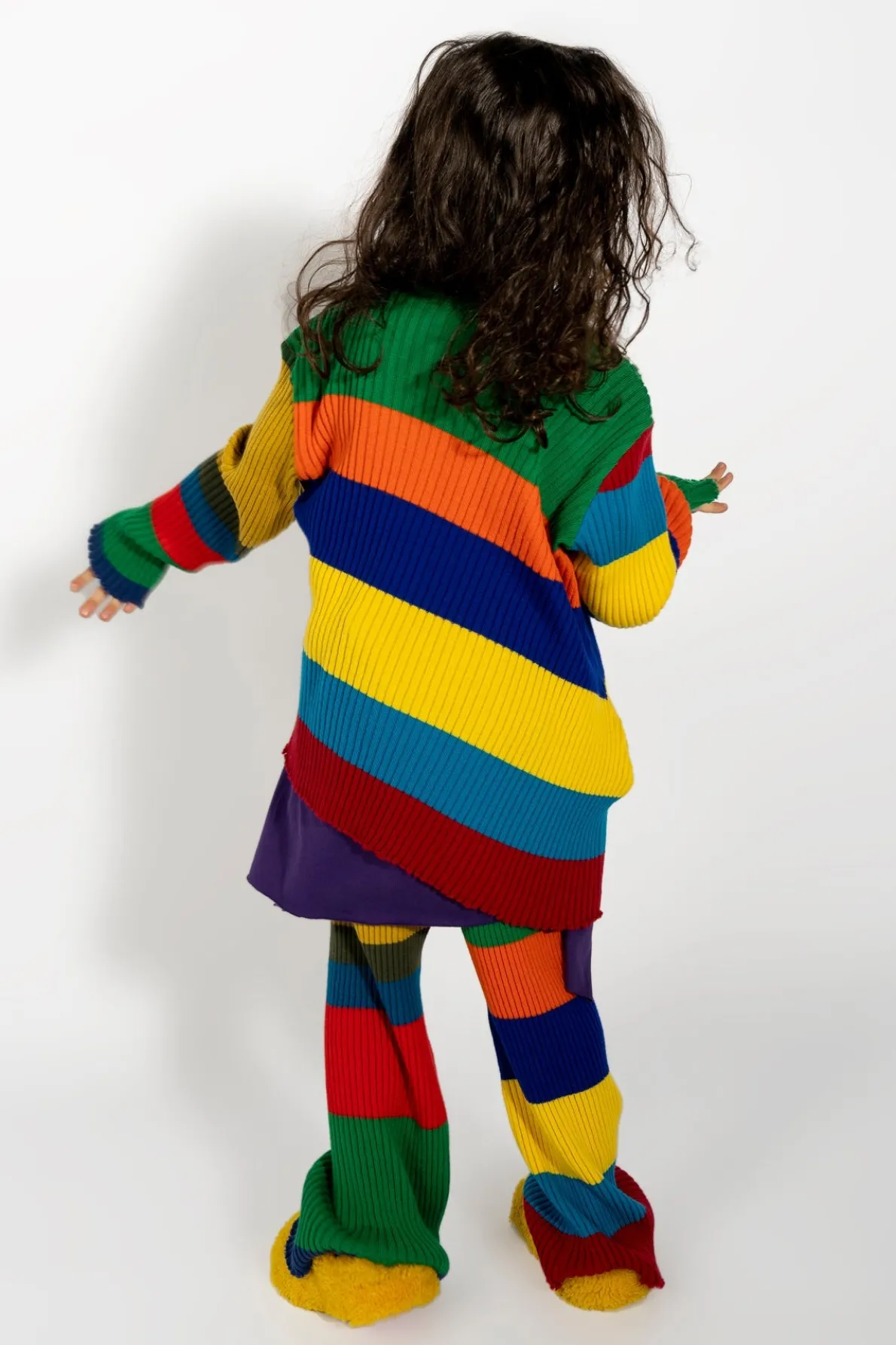 Multi stripes merino wool jumper with asymmetric hem and round neck Fabric: Merino Yarn 100% Wool size and fit: Product in pictures is size 5 years