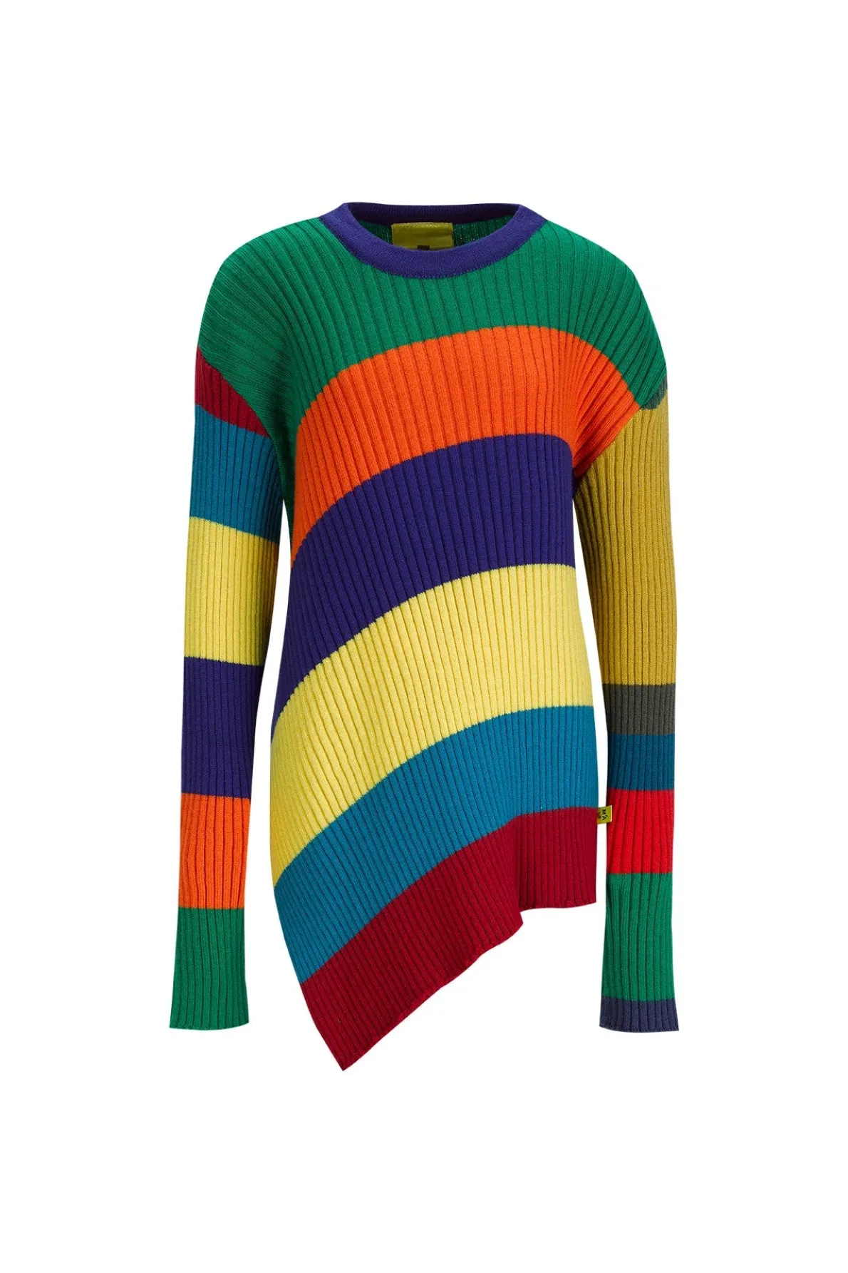 Fab stripes of merino wooly goodness – this kid-friendly jumper's got an asymmetric hem and round neck for that extra bit of funk!• Knitwear• Stripes• Asymmetric hem• Round neckline