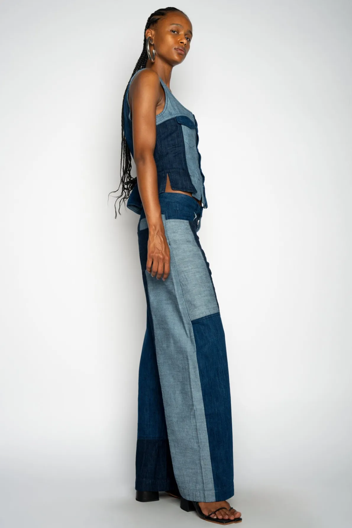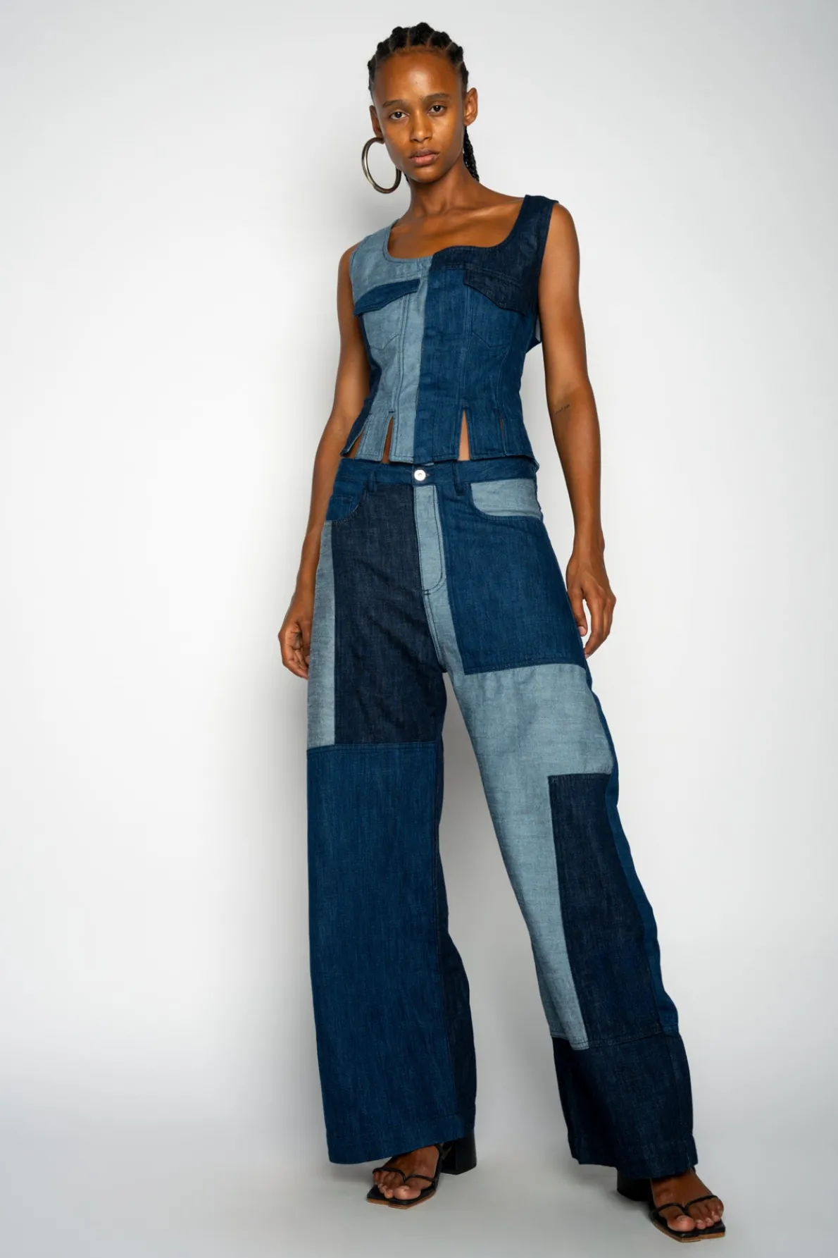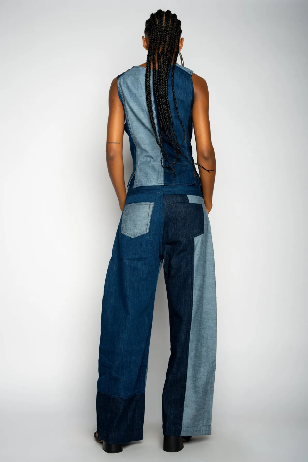 These classic M'A 5 pocket boyfriend trousers feature mixed denim and a wide, relaxed fit. Drop the waist and rise for a casual, raw hem look!• Blue • Mixed Denim• Wide leg• Raw hem