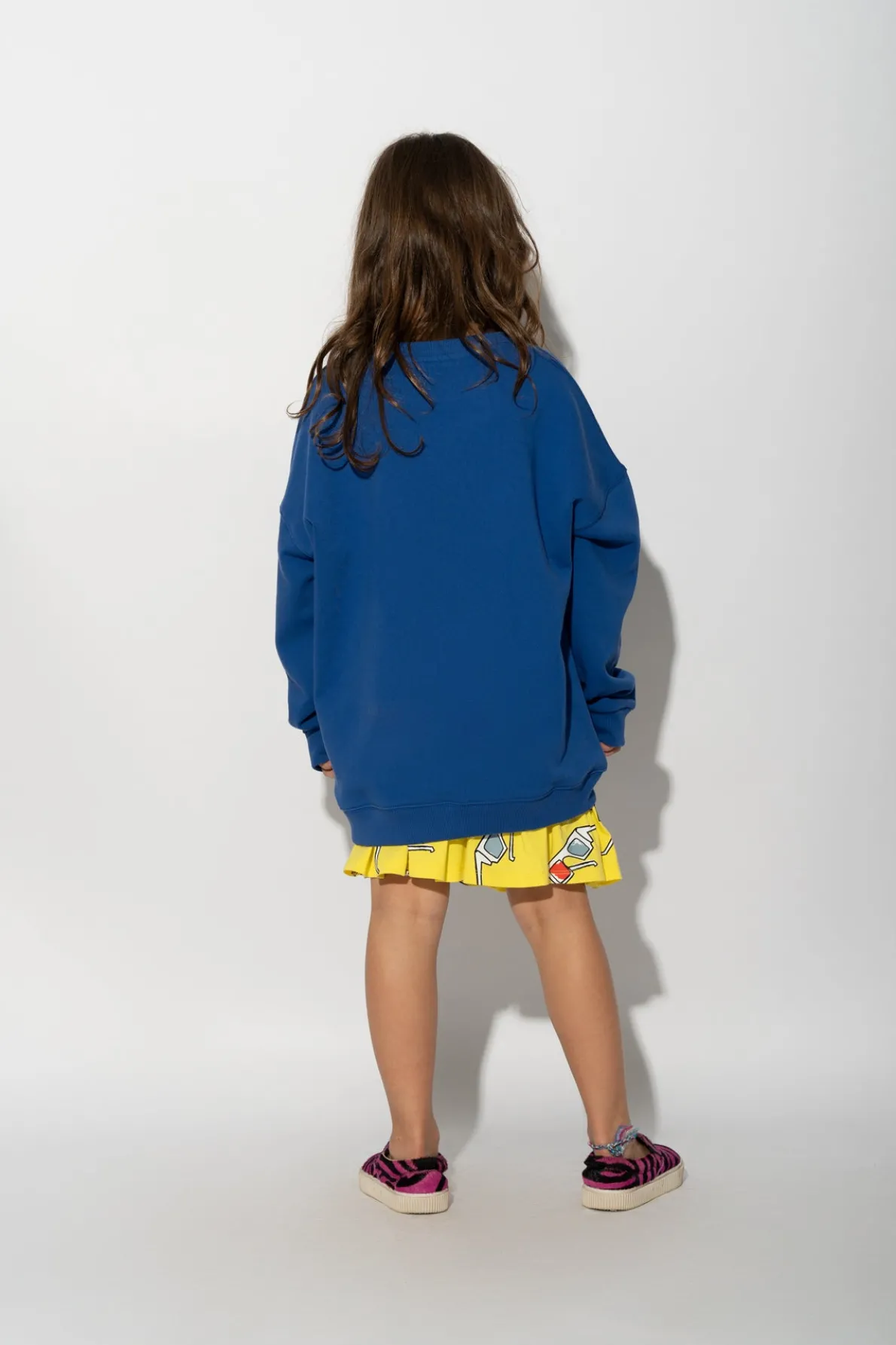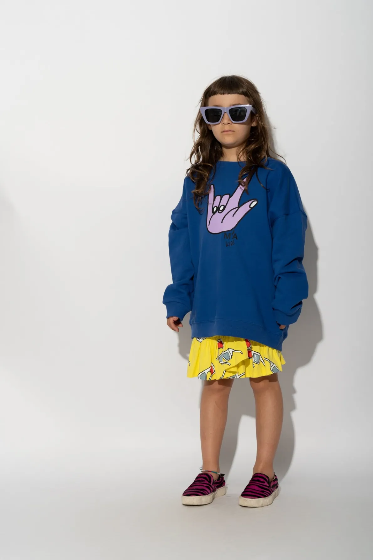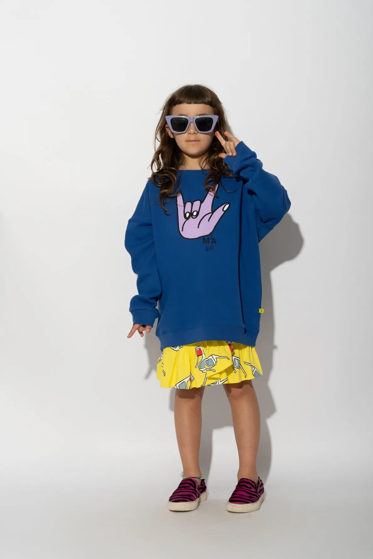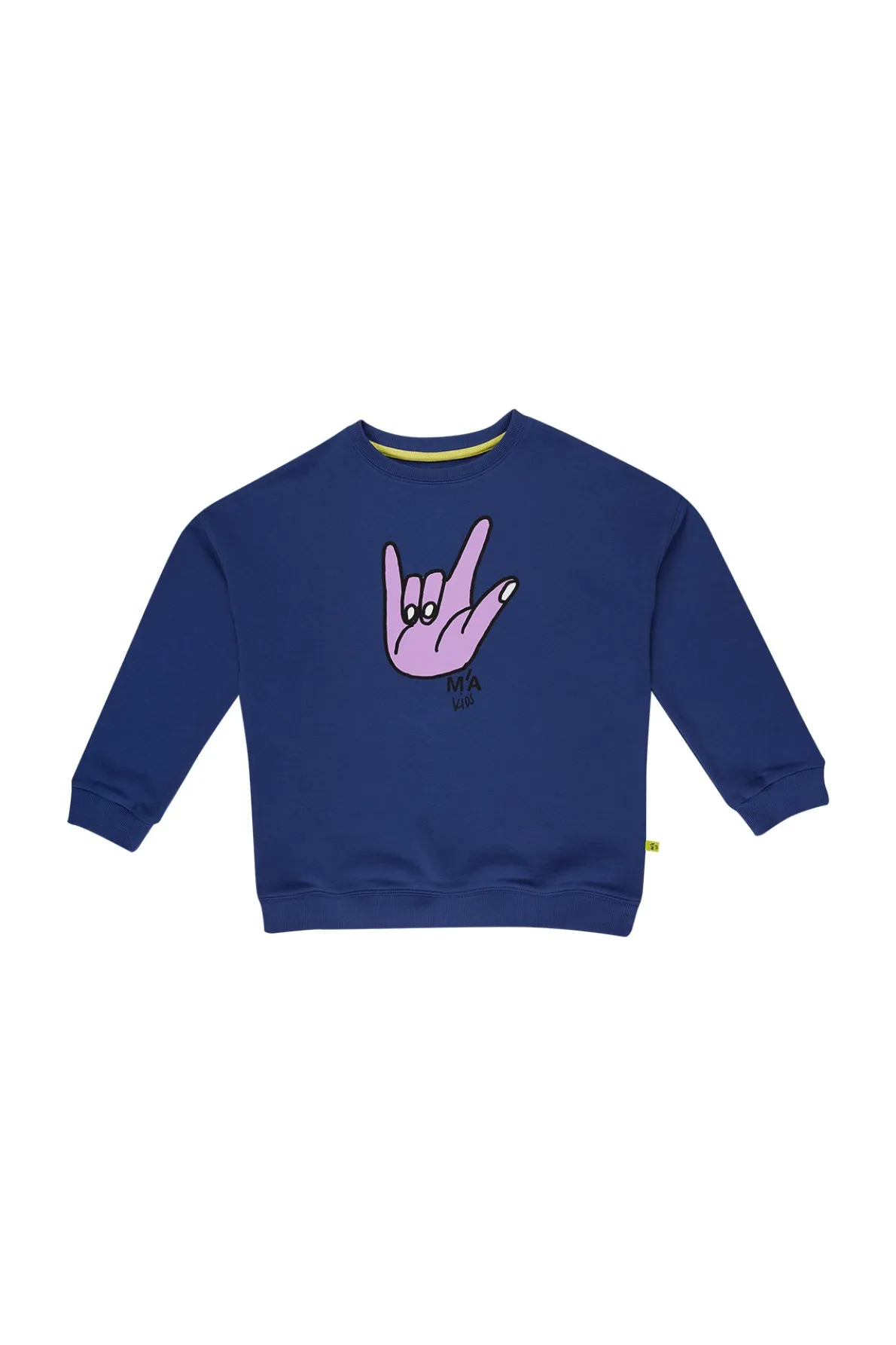 Cozy and cute, this blue crew neck sweatshirt with a hand print is perfect for your little one! Featuring soft fleece cloth, ribbed neck and cuffs, and a flattering hem, it's sure to be their favorite 'fit!• Blue• Hand print• Long sleeves• Crew neck
