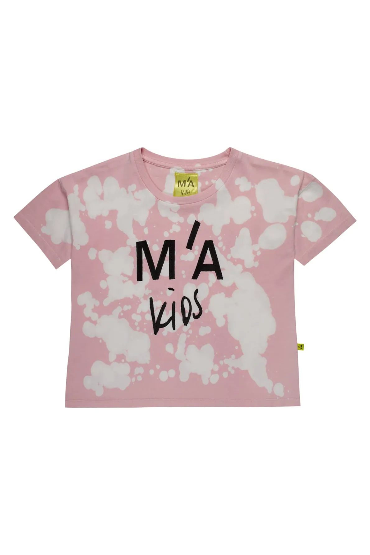PINK AND BEIGE SPLATTERED LOGO T-SHIRT