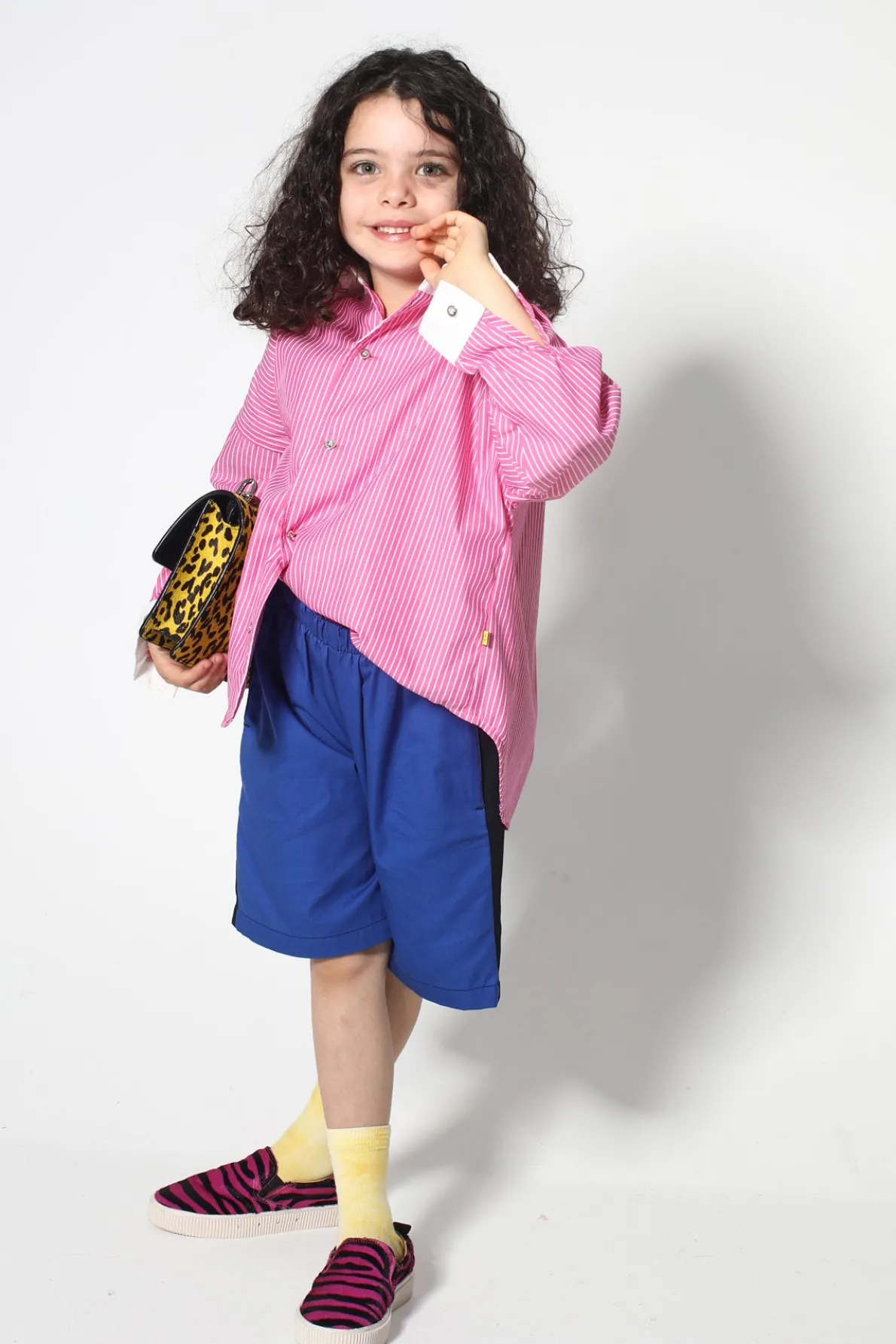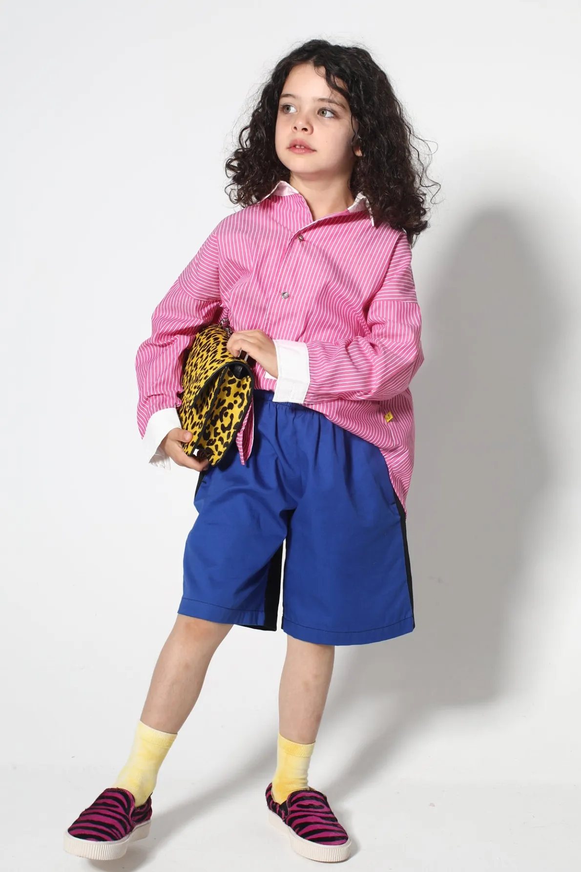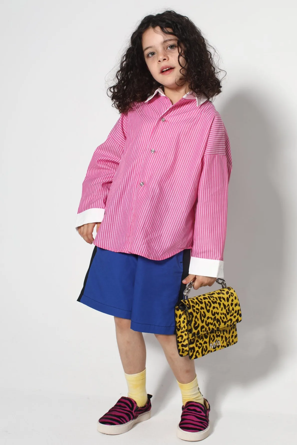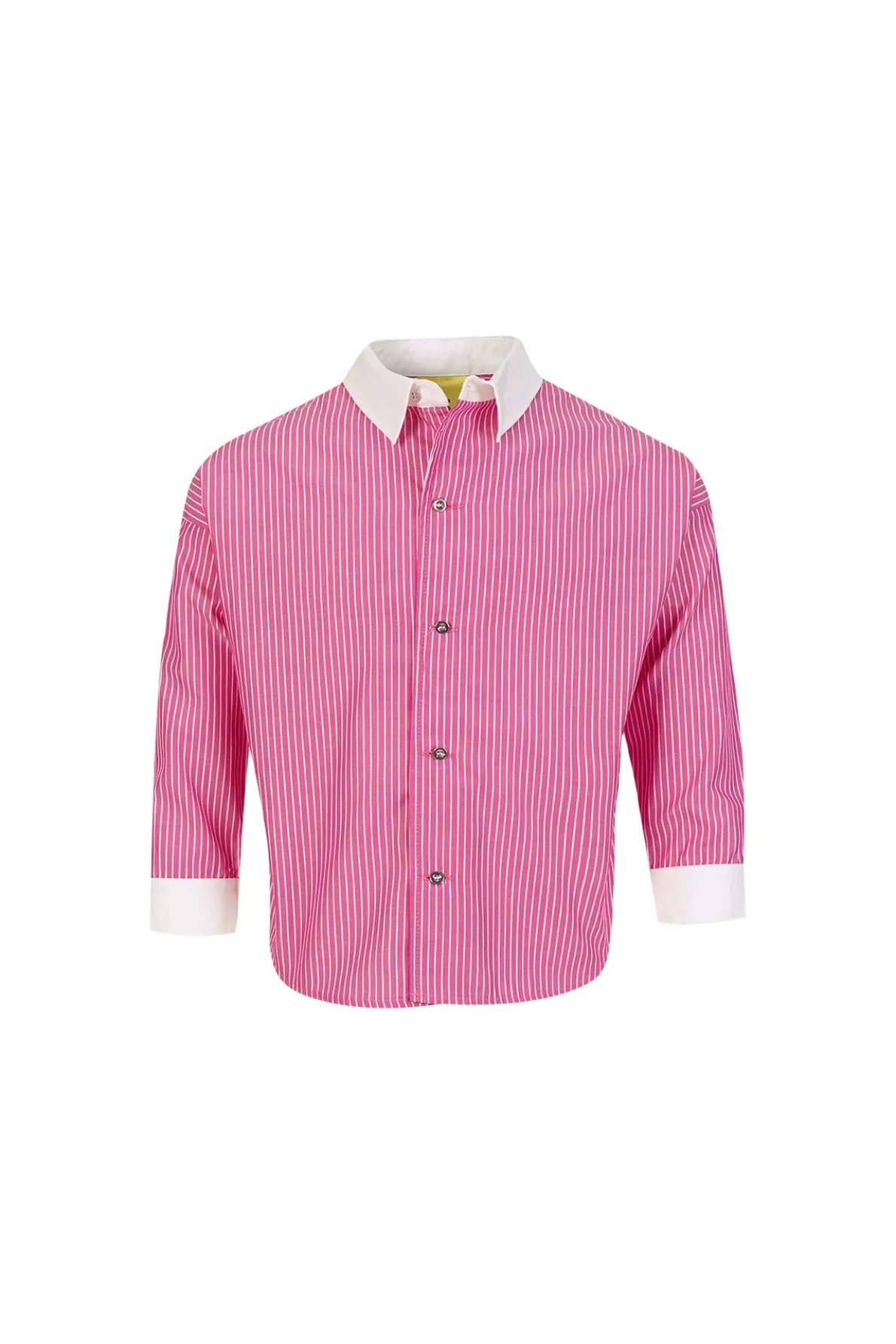 This comfy kid-sized shirt has pink and white stripes, long sleeves, a white point collar, and fold-up white cuffs. No need to be a grown-up when you're styling in this sweet top!• Pink and white• Stripes• Long sleeves• Front buttons