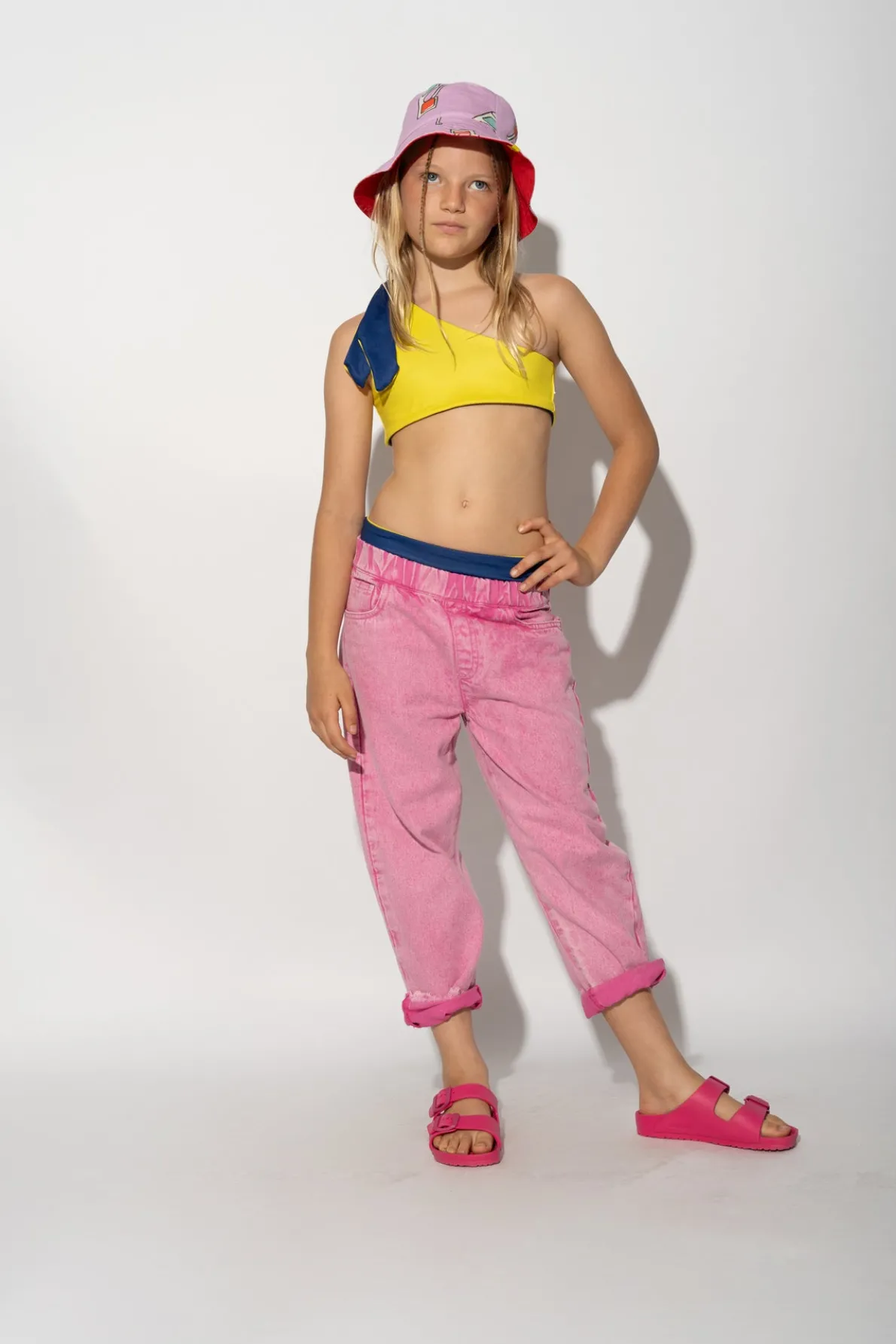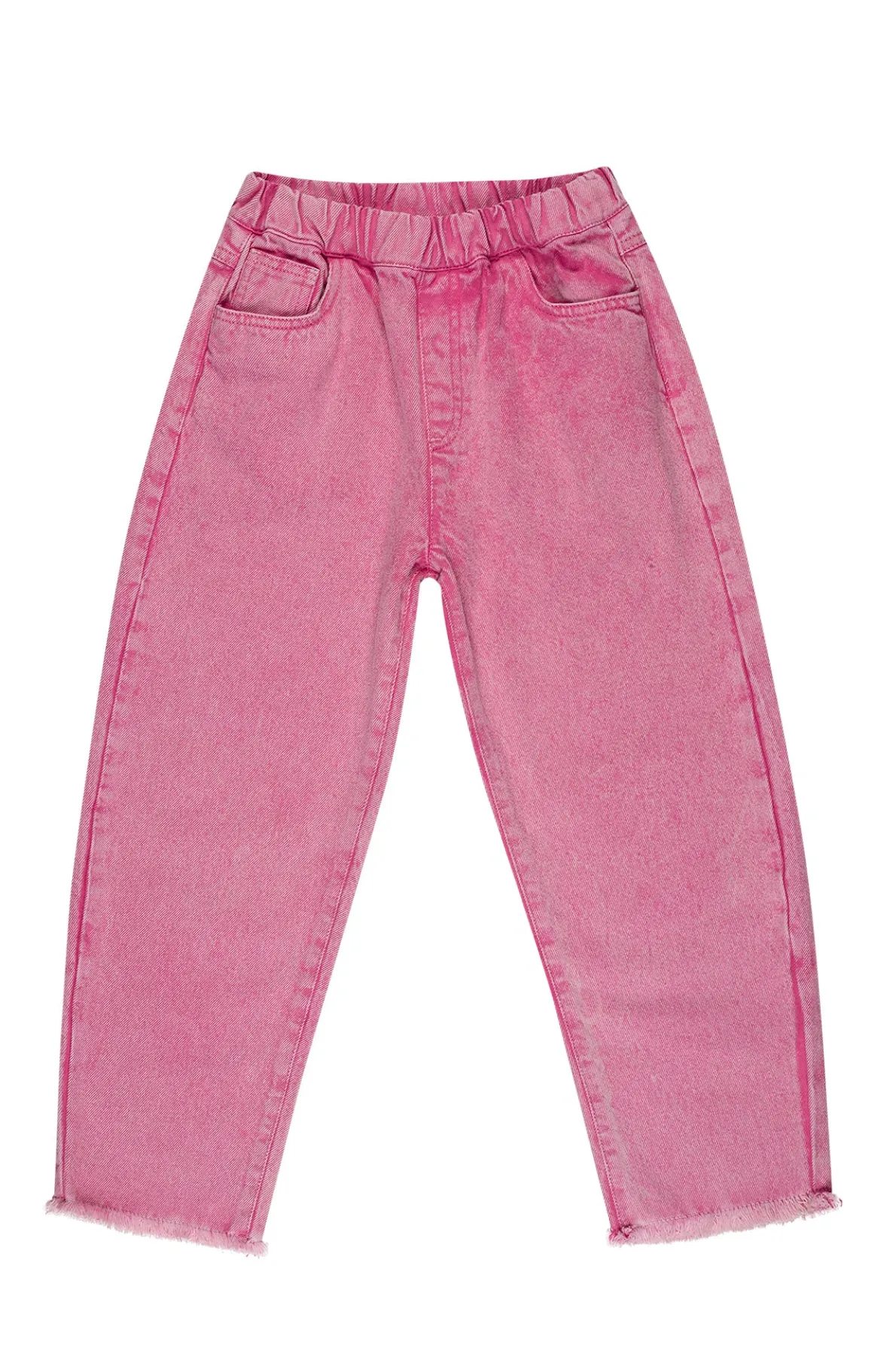 Get pink and ready to play all day! Don't put a lid on your style with these baggy trousers. Made with fade out pink denim, these pants have an elastic waistband and frayed edges for ultimate comfort and a cool, laid-back look. • Fade out pink• Baggy fit• Elastic waistband• Frayed edges