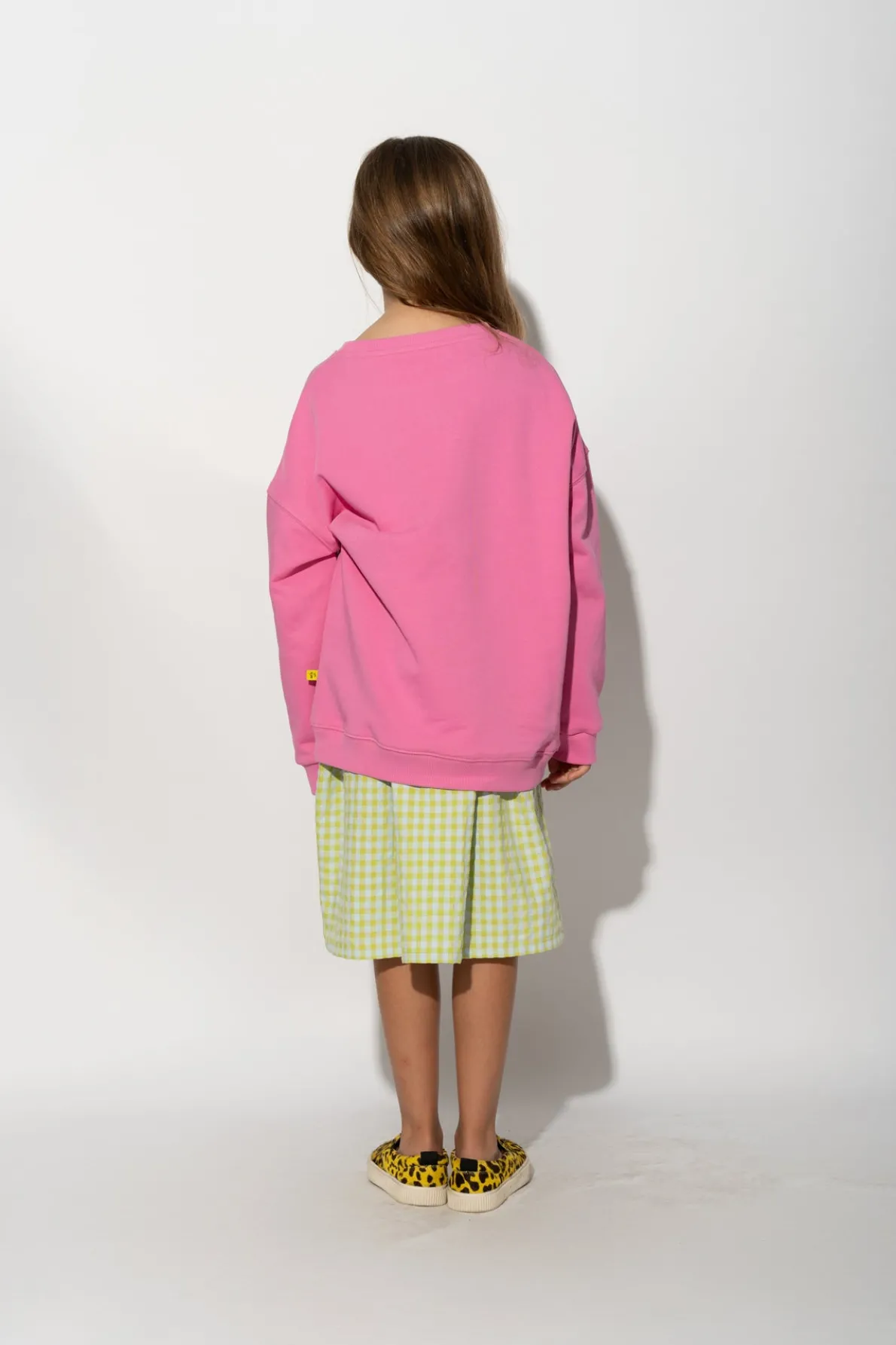Cozy and cute, this pink crew neck sweatshirt with daisy print is perfect for your little one! Featuring soft fleece cloth, ribbed neck and cuffs, and a flattering hem, it's sure to be their favorite 'fit! • Pink • Daisy print • Long sleeves • Crew neck Fabric: Fleece 100% Cotton size and fit: Product in pictures is size 5 years
