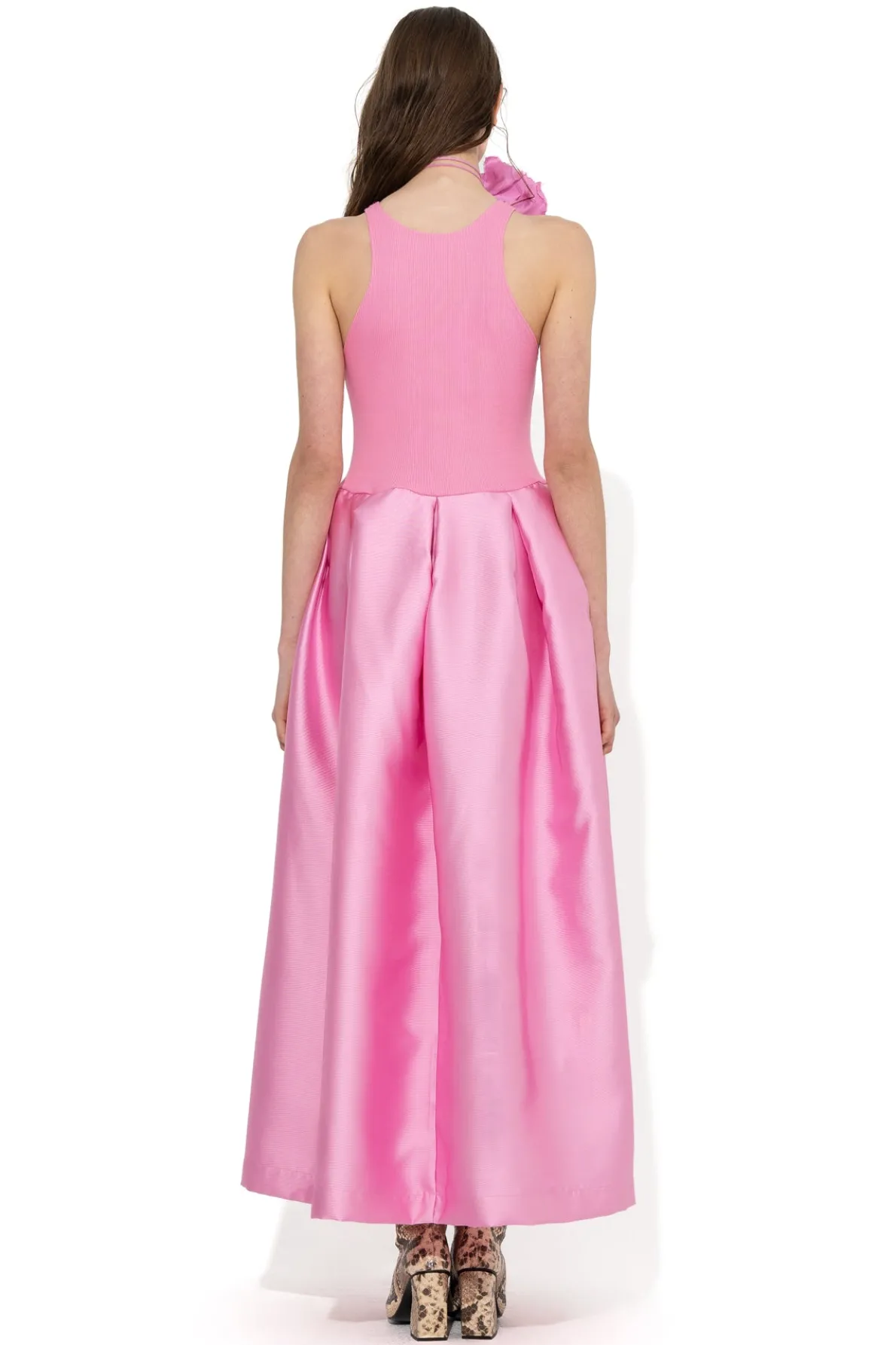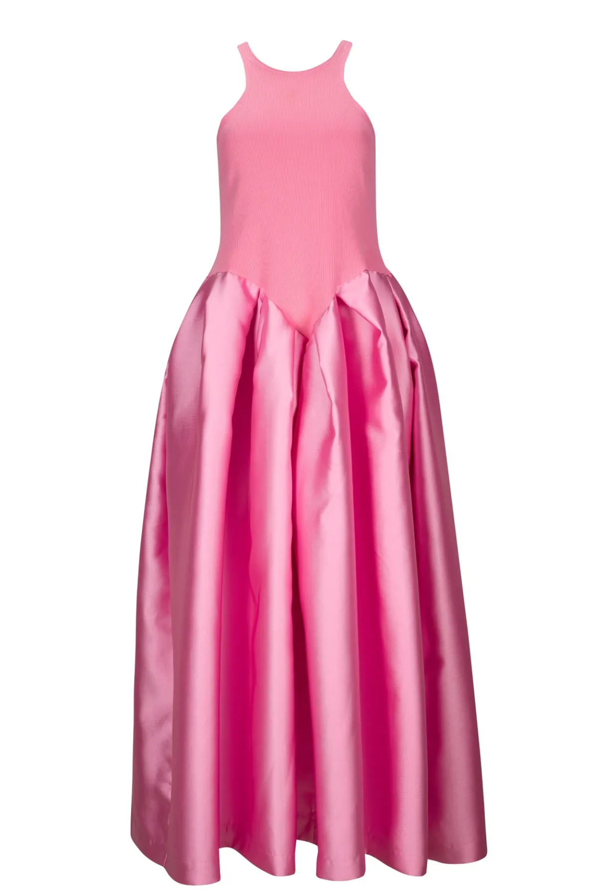 This amazing dress captivates with a vibrant pink tank top and rib jersey, paired with a lovely pink puff long skirt! Experience luxury & comfort like never before!• Pink• Puff skirt• Sleeveless• Tank top scooped