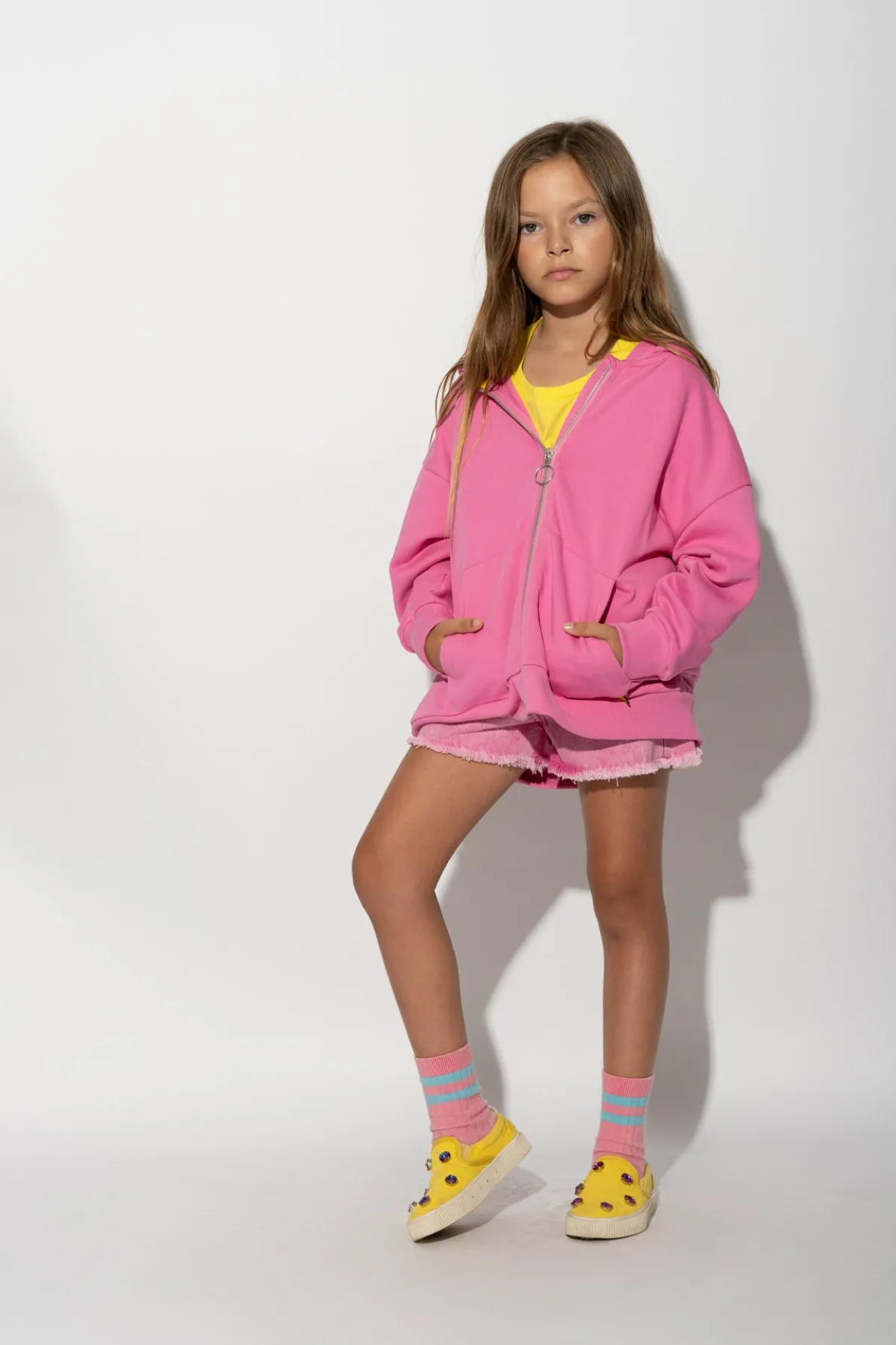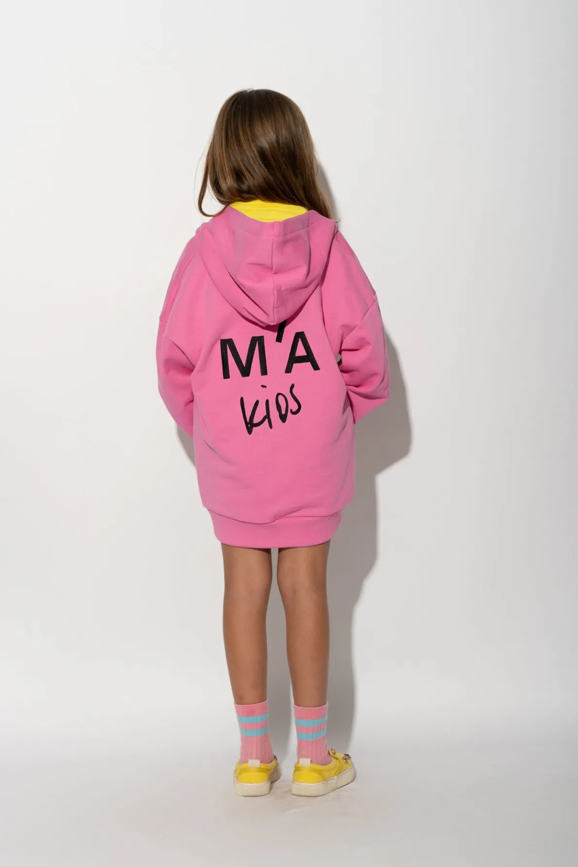 Get ready to rock the town in this vibrant pink hoodie. Perfect for any kiddo, it features a convenient front zipper and pockets for all the good stuff. But the cherry on top? The M'A Kids logo is embroidered on the back (the brand's official seal of awesomeness)!• Pink• Hoodie• Embroidered M'A Kids logo• Front zipper and pockets