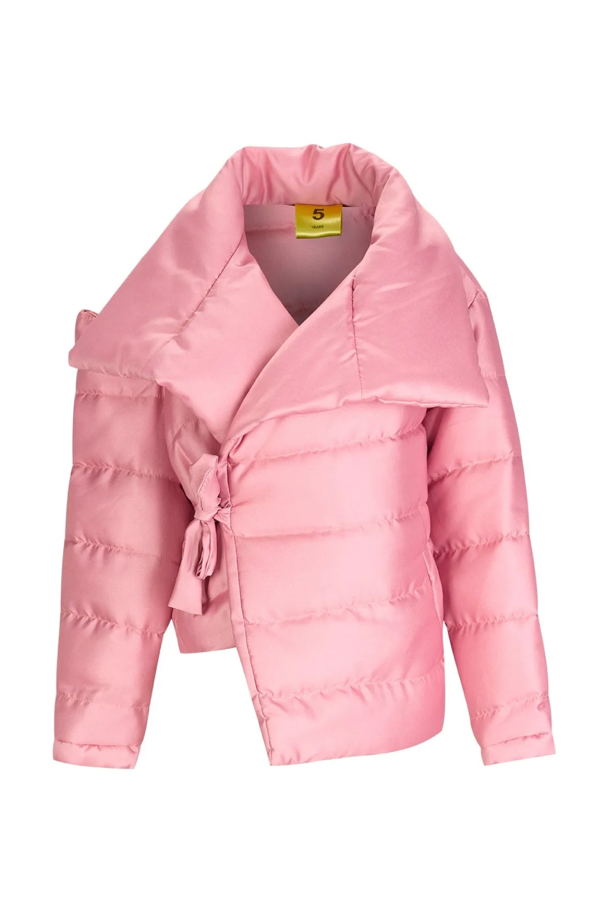 Asymmetric puffa jacket with a pointed open collar, asymmetric drawstring closure, asymmetric hem and opening on one shoulder Fabric: Main: 100% Recycled Polyester / Filling: 100% Recycled Polyester Size and fit: Product in pictures is size 5 years