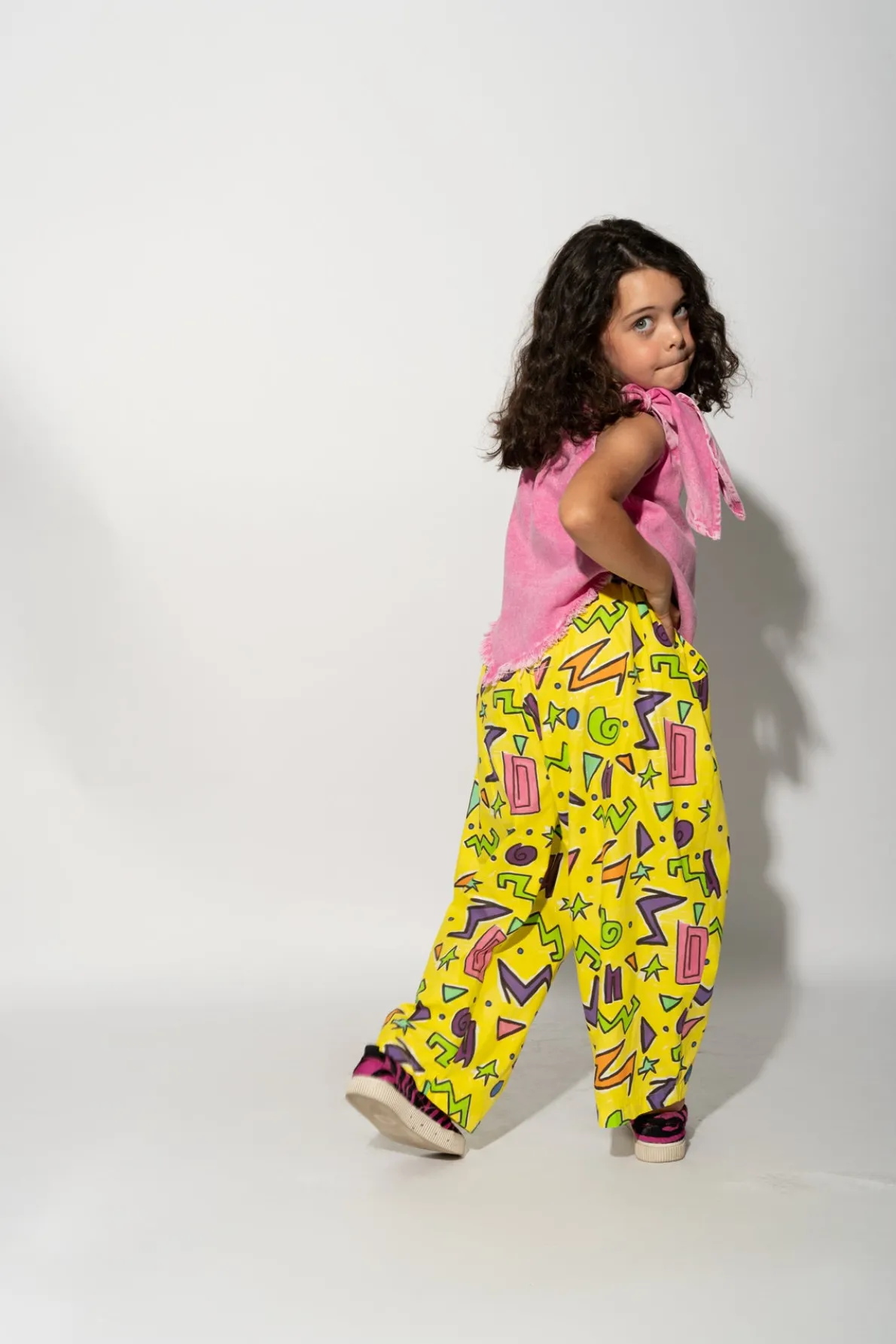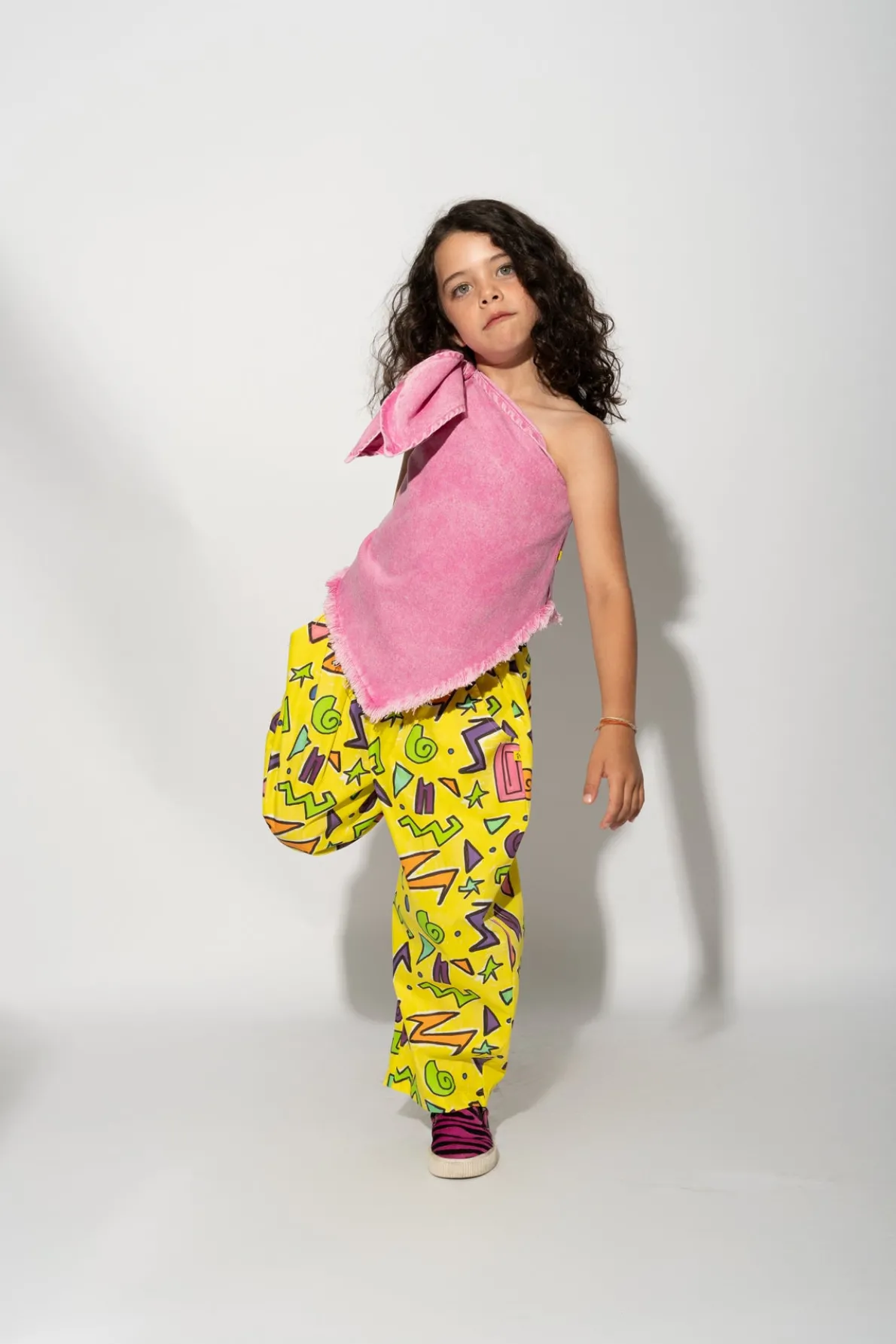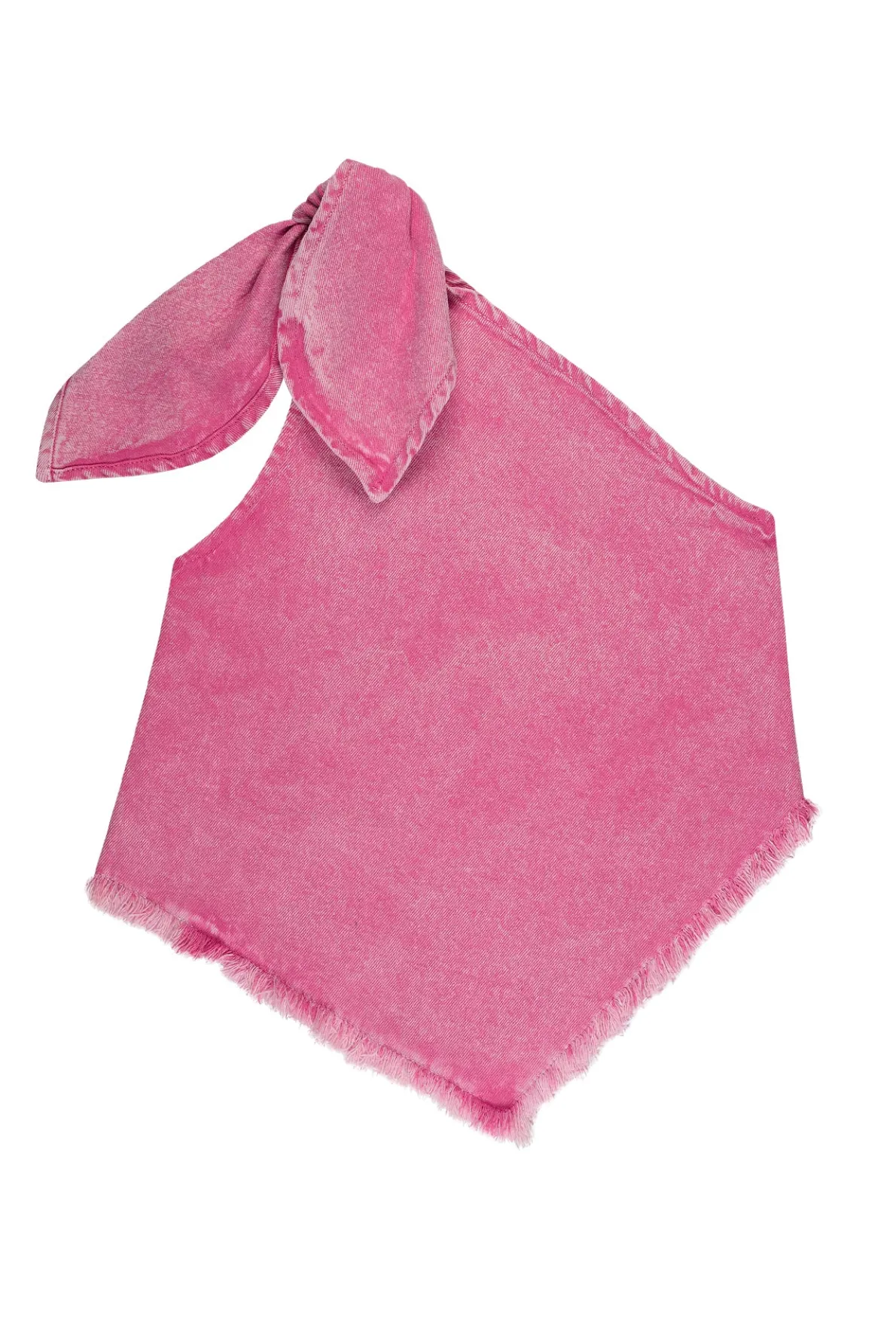 A playful twist on the classic denim look, this top features a unique fade out pink denim and a cute knot on the strap. The asymmetric and frayed hem adds a touch of quirkiness, making it the perfect statement piece for any fashion-forward kid. • Fade out pink• One shoulder• Knot• Asymmetric and frayed hem