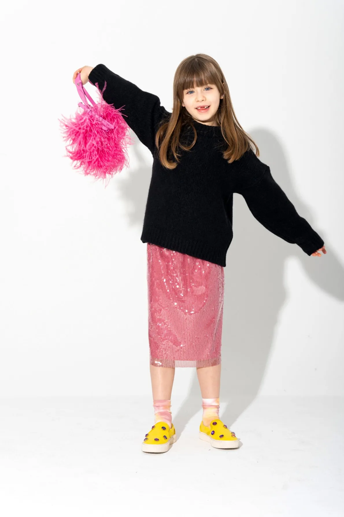 Time to twinkle and sparkle with this midi skirt in pink sequins! This skirt is perfect for adding a little pizzazz to your kid's look with its regular cut. • Pink• Sequins• Regular cut• Midi length
