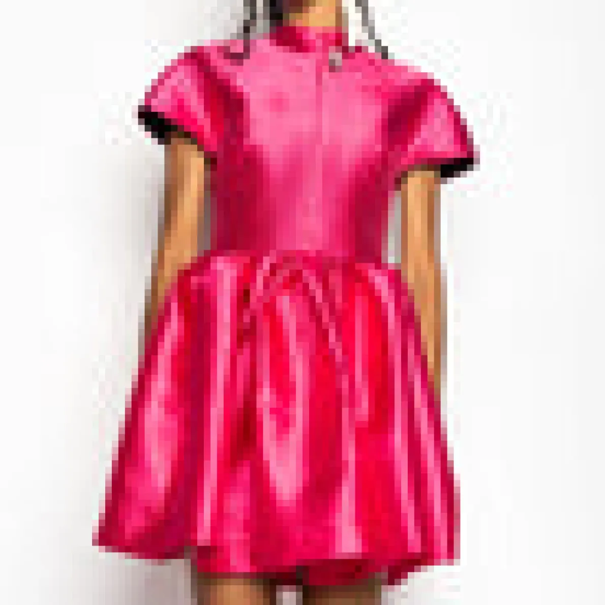 Delight in this vibrant pink Mikado dress that features a mini silhouette, short sleeves, a high neckline, cinched waist and a voluminous skirt!• Cinched• Puff skirt• Short sleeves• Mini length