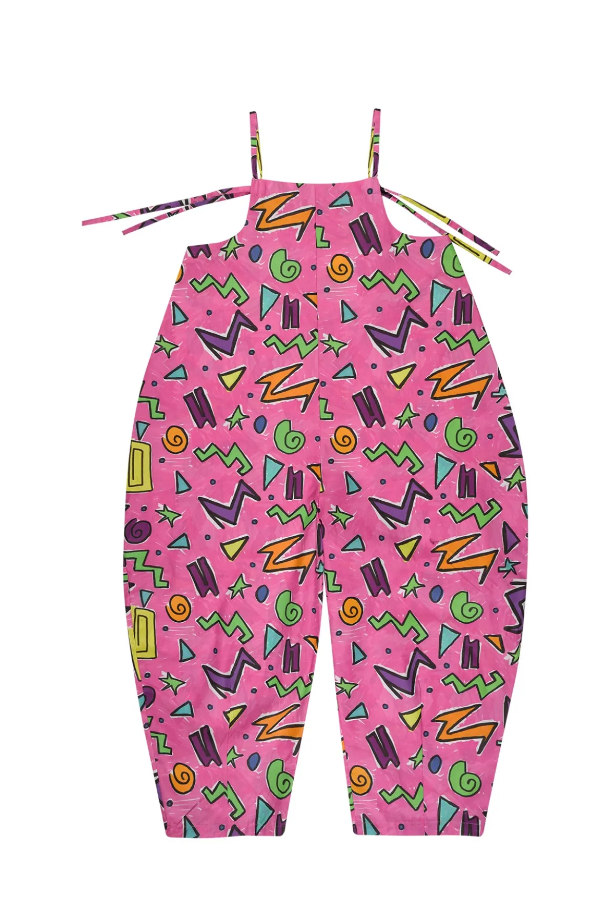 PINK SQUIGGLE PRINT BALLOON JUMPSUIT