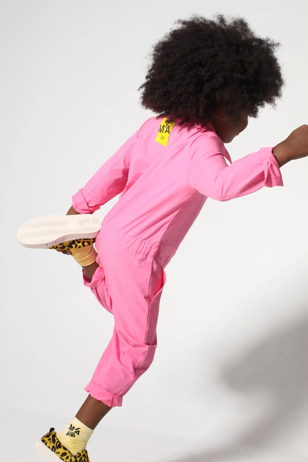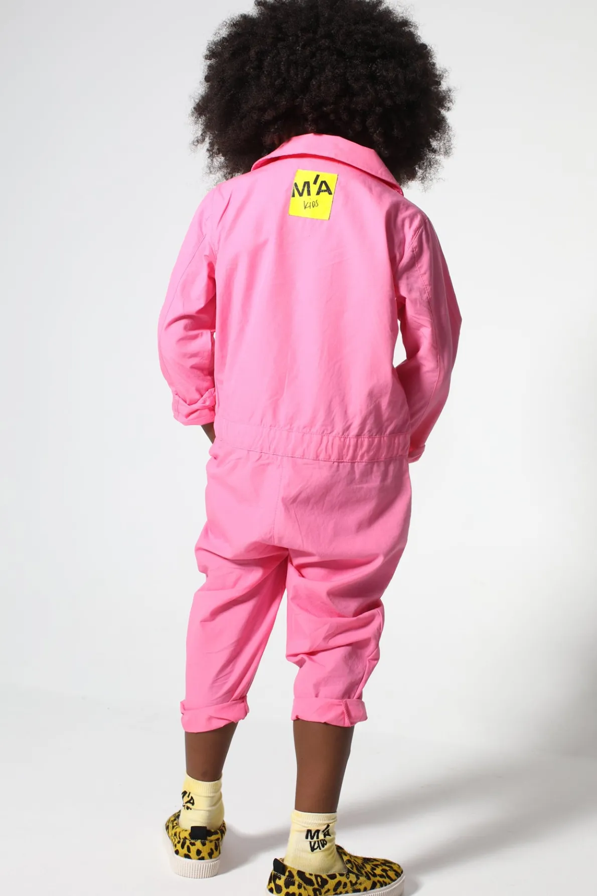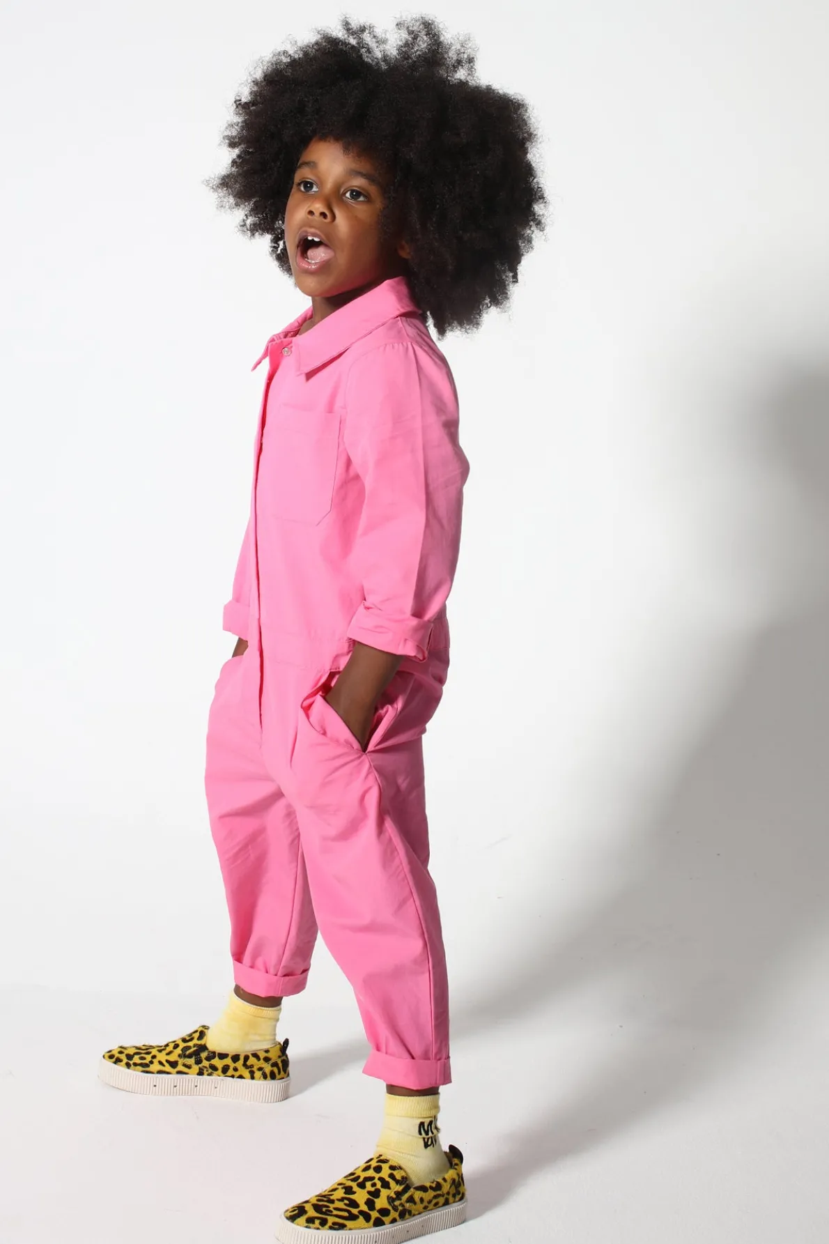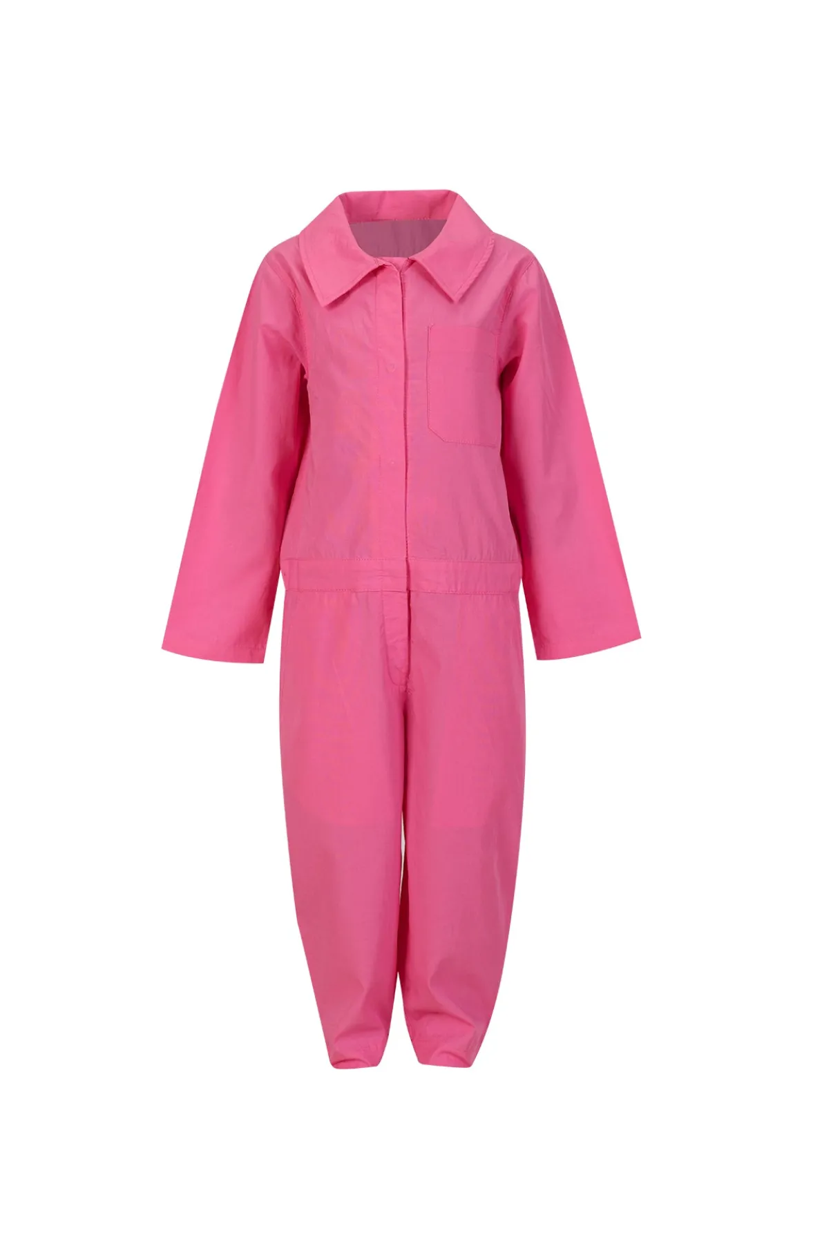 Rock a rosy look with this bright pink workwear jumpsuit! A pointy collar, long sleeves, plus side pockets and front buttons make it a kid-friendly must-have. • Pointy collar• Long sleeves• Side pockets• Front buttons