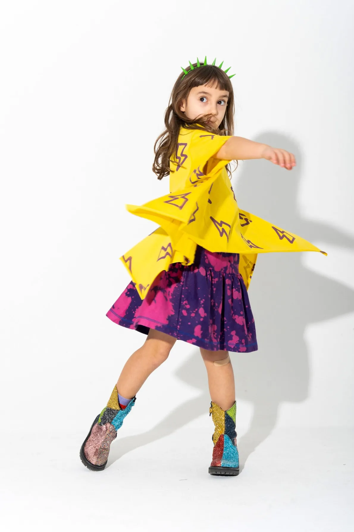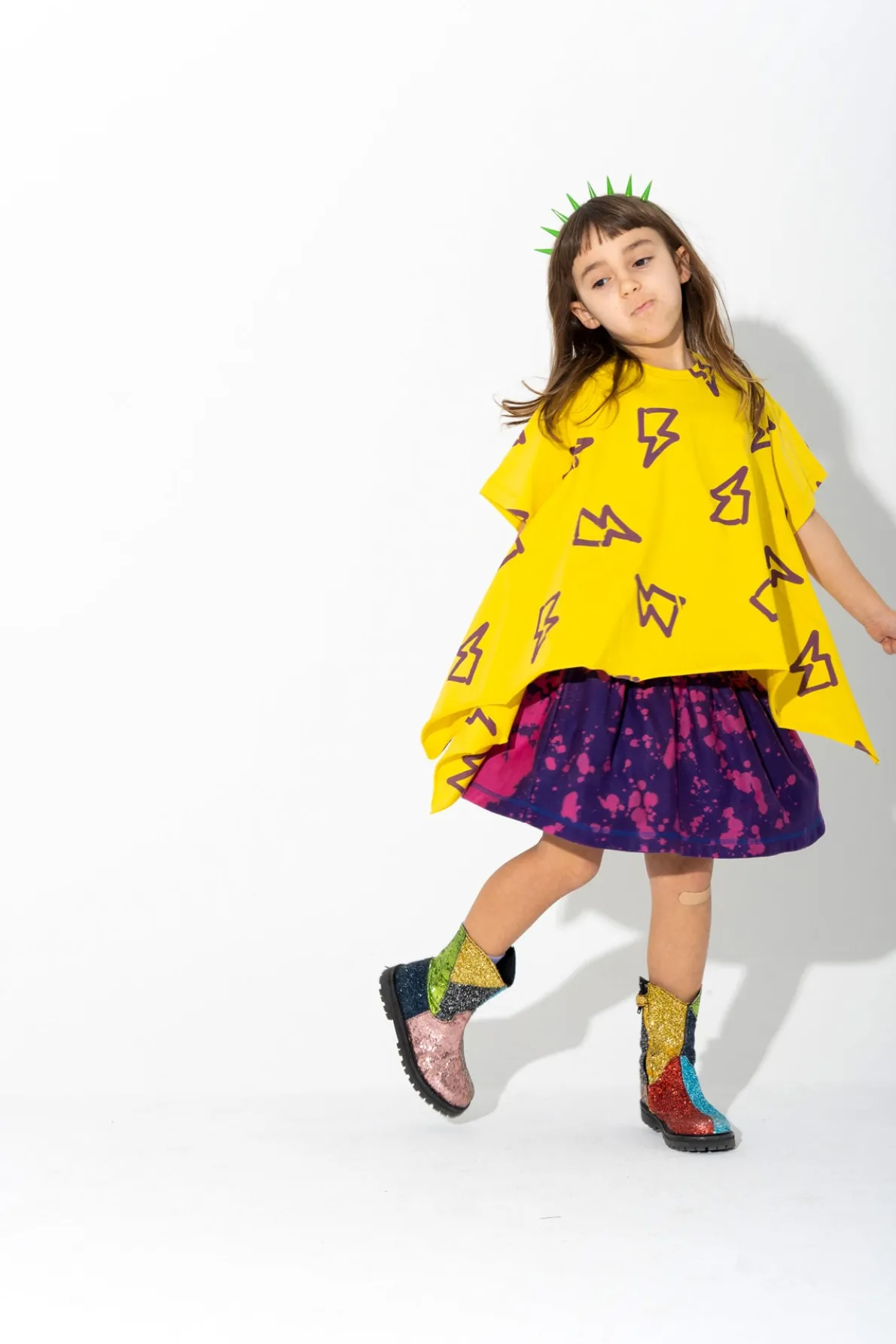 Rock this knee-length skirt for a fleecy-good time! The elastic waistband will make sure you’re comfy 'n' trendy in that purple and pink splatter-pattern.• Splattered• Purple and Pink• Elastic waistband• Knee length