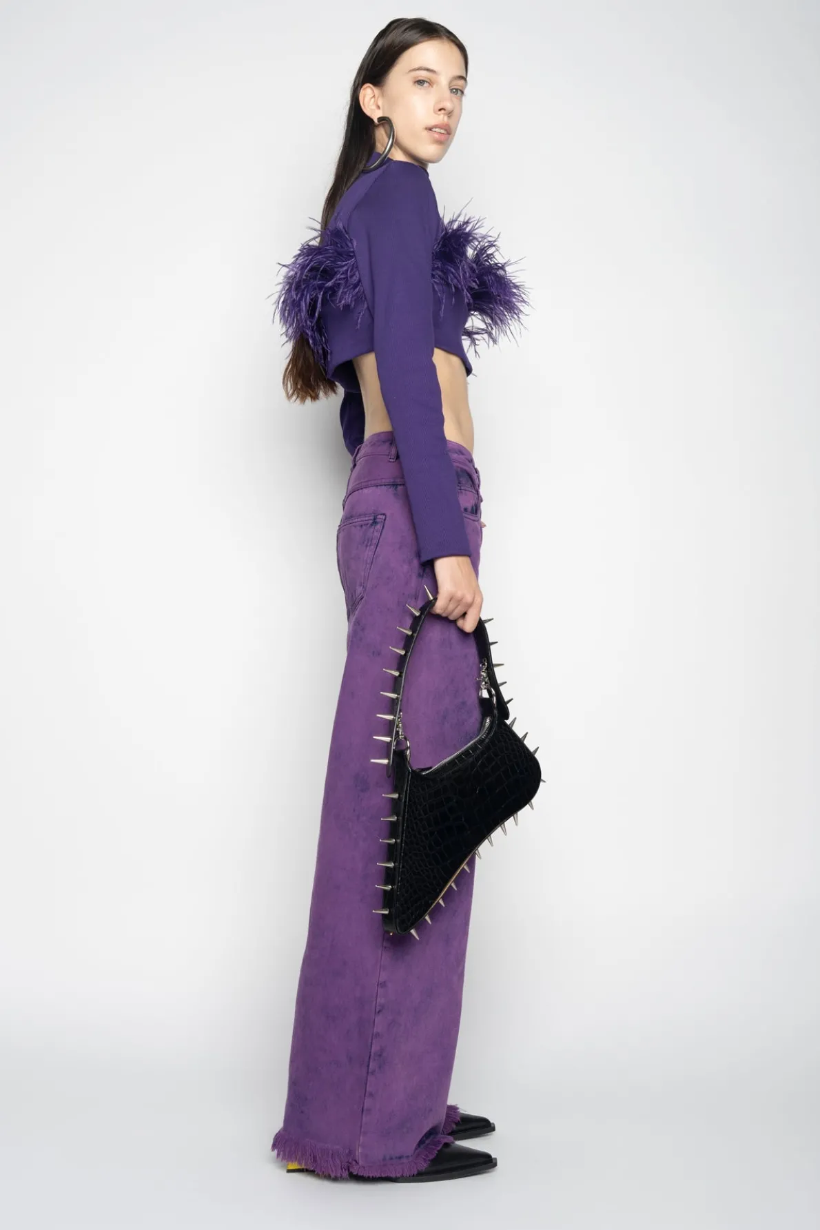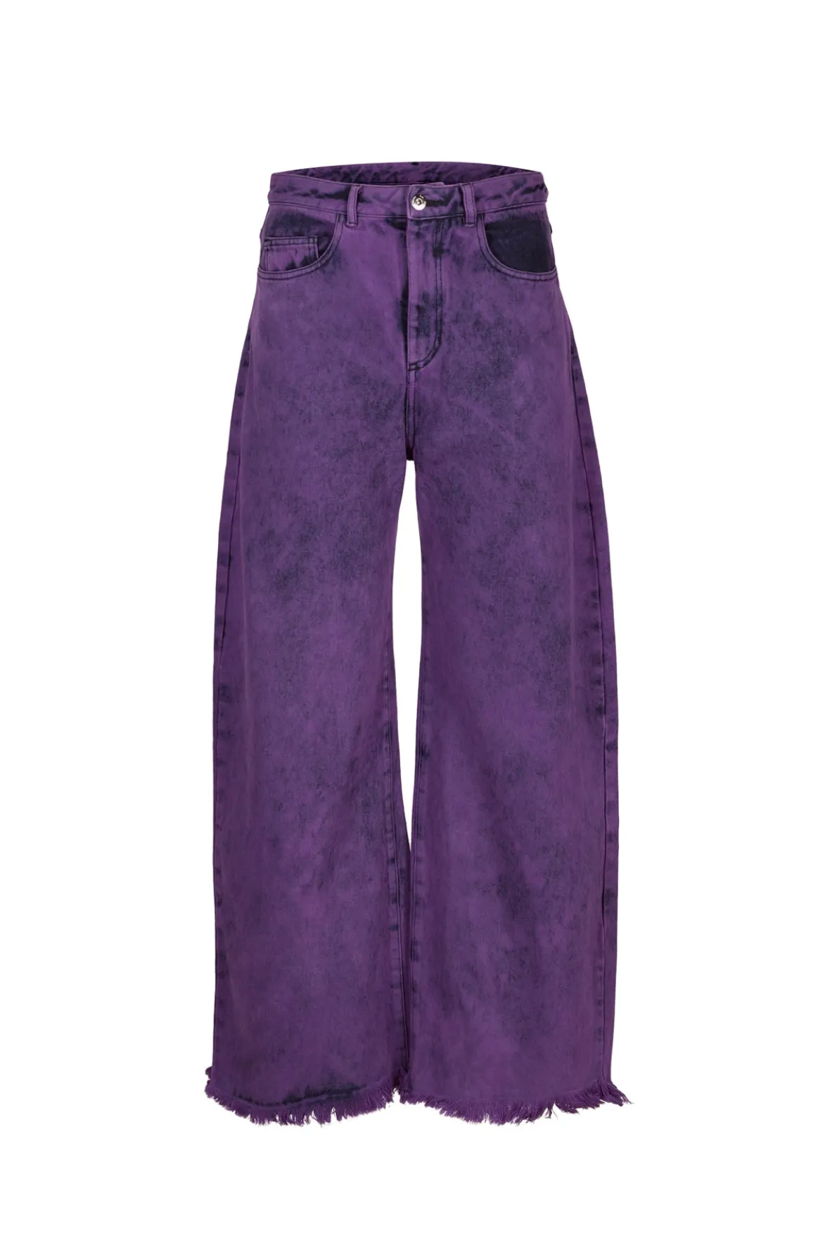 Description: Classic M'A 5-pocket boyfriends in vibrant purple overdyed denim. These wide-leg jeans provide a relaxed, dropped-waist fit with an irresistibly raw hem. Fabric: DENIM OVERDYE 85% Cotton / 15% Recycled cotton Pre Consumer Made with recycled cotton and dyed using water responsibly size and fit: OVER