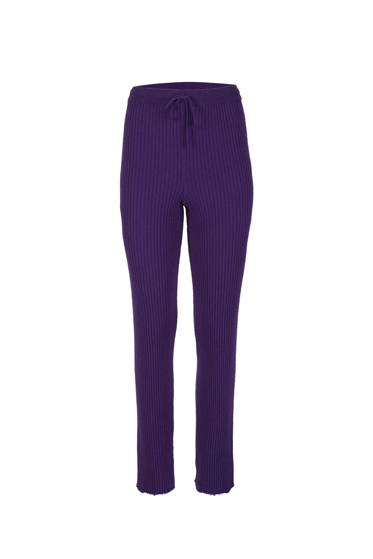 Description: Purple wool trousers featuring an elasticated waistband with a drawstring fastening, a high waist and an unfinished hem. Fabric: Extrafine Wool / Merino 100% Extrafine Wool / Merino Made of mulesing free wool – animal cruelty free. size and fit: True to size Yana is 5ft5 / 1.70 cm and is wearing a si