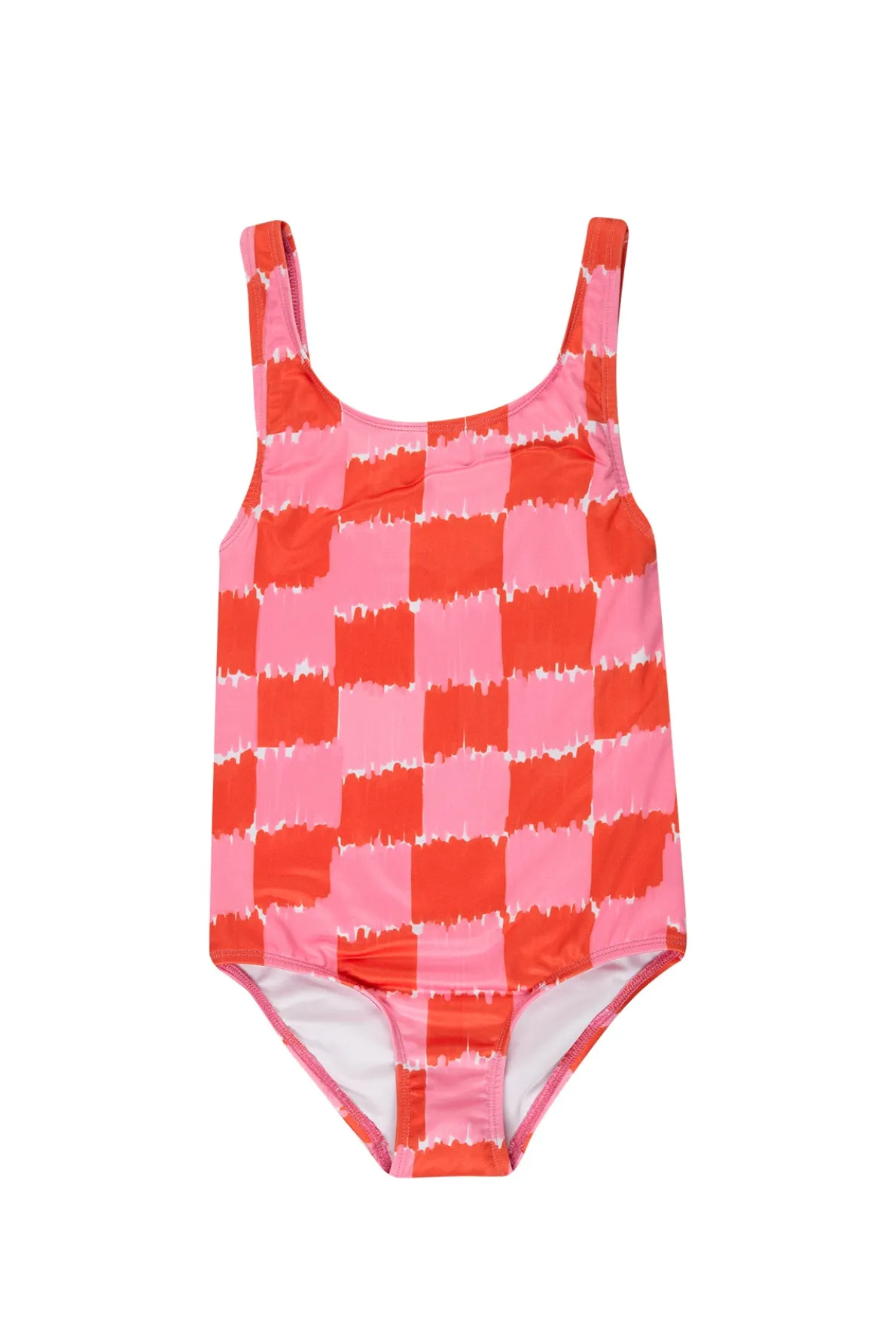 Dive into style with this fun red and pink gingham swimsuit featuring a u neckline and elasticated legs – perfect for your little ones!• Red and pink• Gingham• U neckline• Sleeveless
